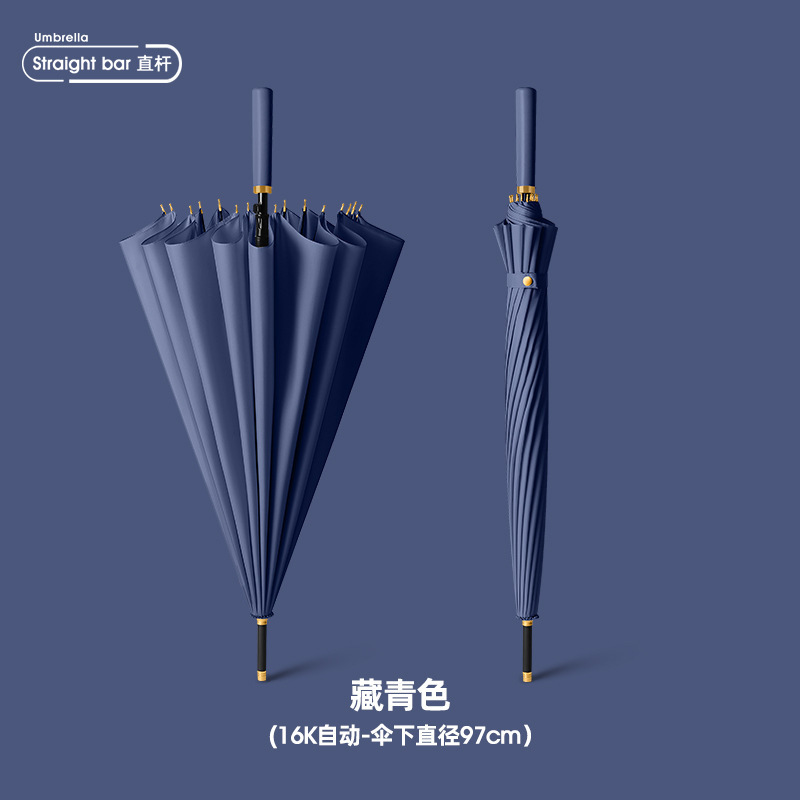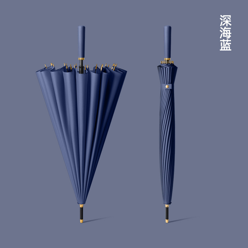 • 24 뼈 자동 [심해 블루] 섬유 우산 뼈 피부 스트레이트 핸들 우산 소매