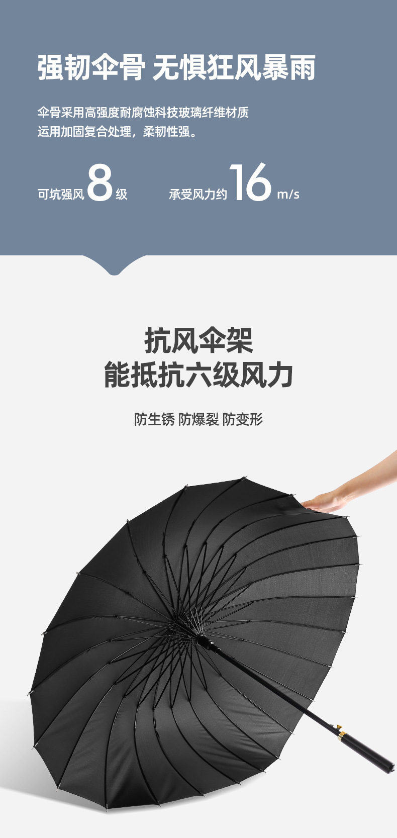 우산 24-뼈 자동 긴 손잡이 큰 방풍 증가 단단한 두꺼운 폭풍우 남성 섬유 사업 스트레이트 우산 성인용