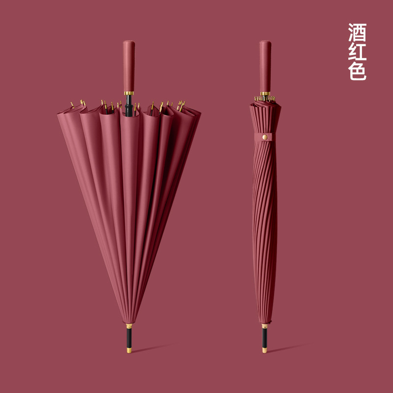 • 깊은 버건디-우산 커버 수동 24 뼈 탄소 강철 보내기