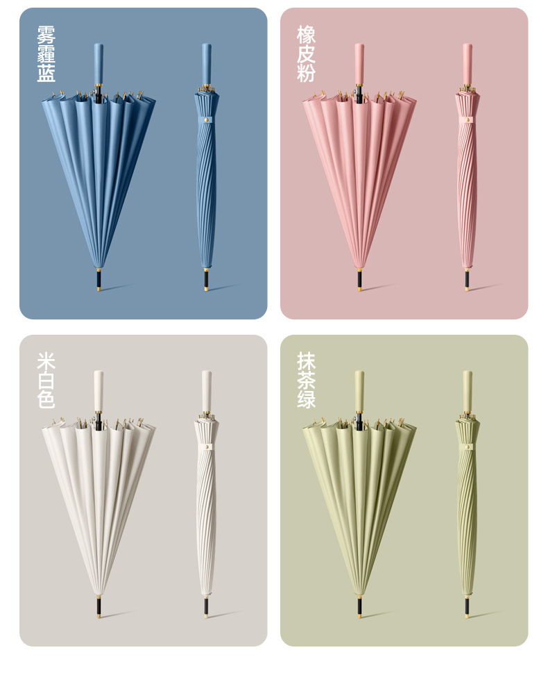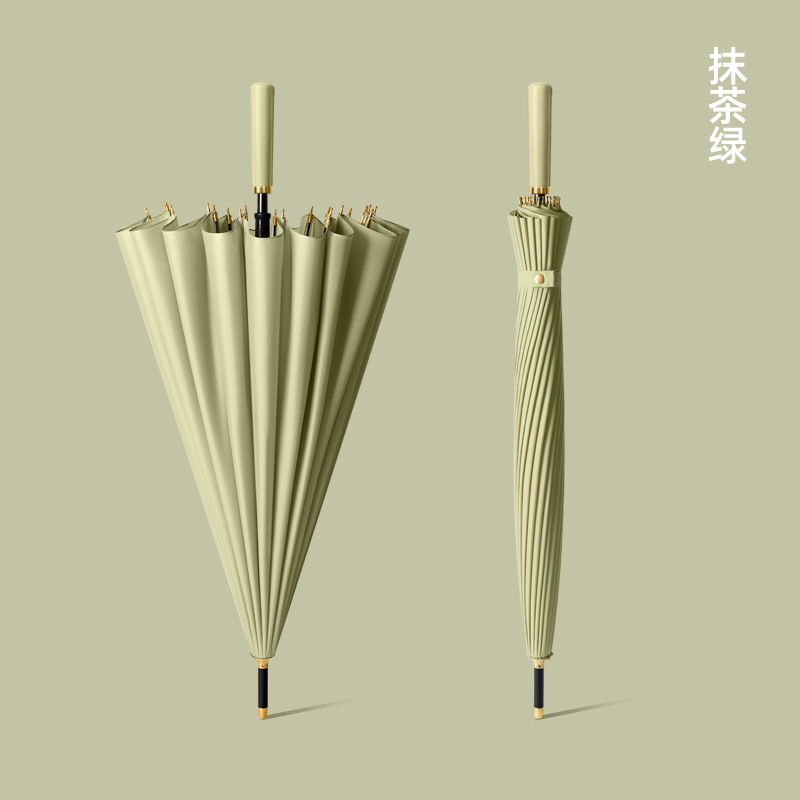 • 24 뼈 수동 [말차 녹색] 섬유 우산 뼈 피부 직선 핸들 우산 커버 보내기