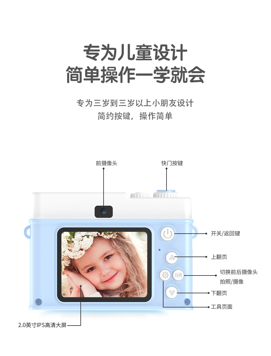 미니 레트로 카메라 전면 및 후면 듀얼 카메라 비디오 촬영 자동 초점 재미 낙서 판잣집 Y3 키즈 카메라