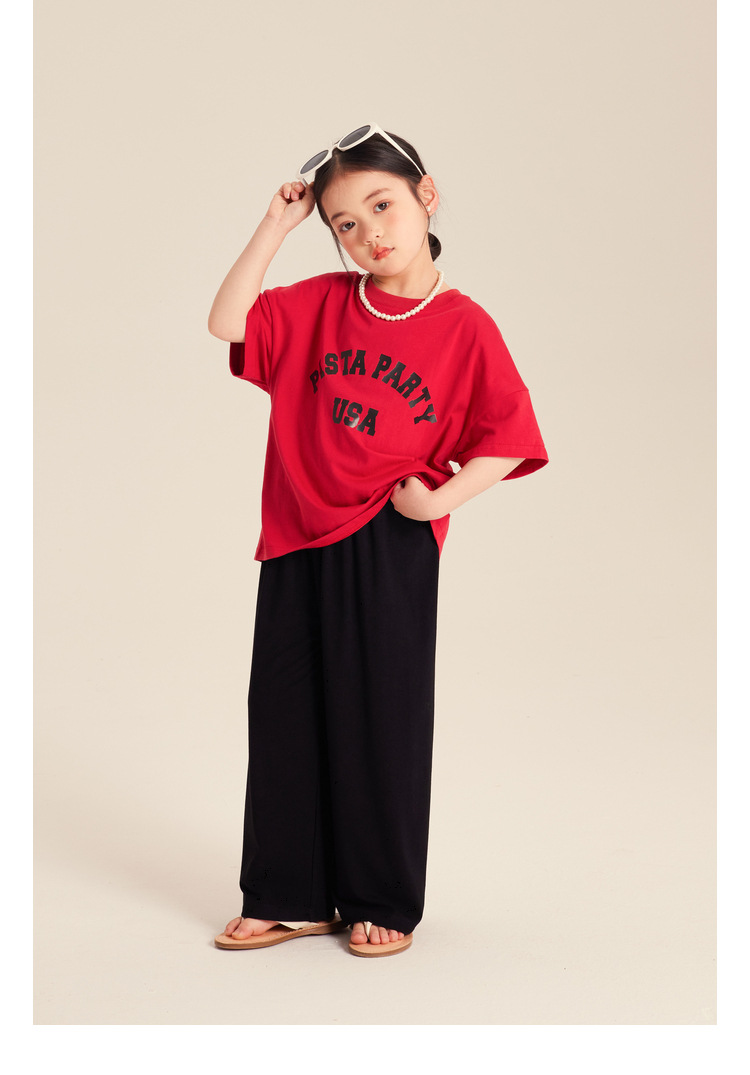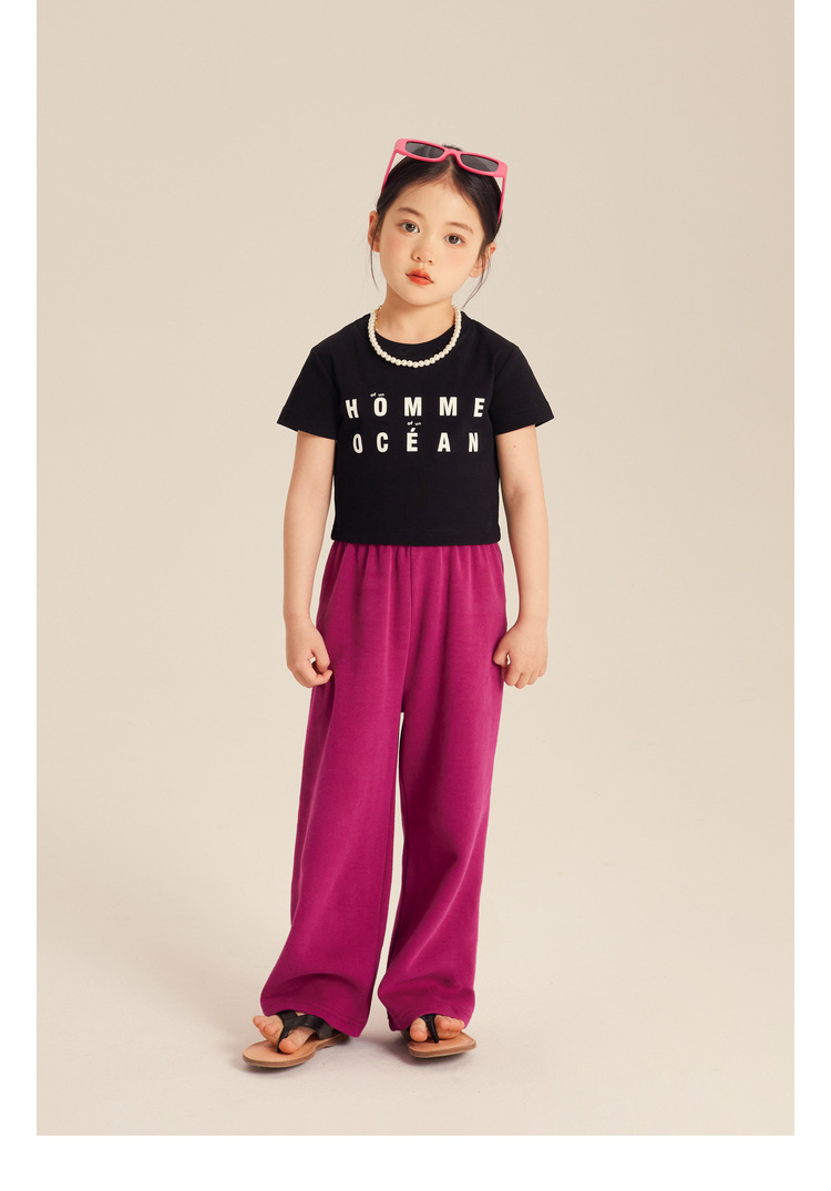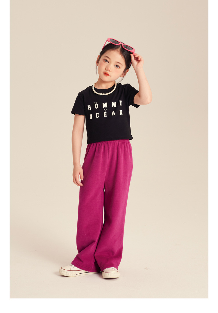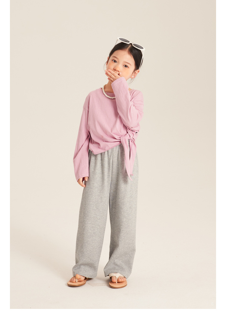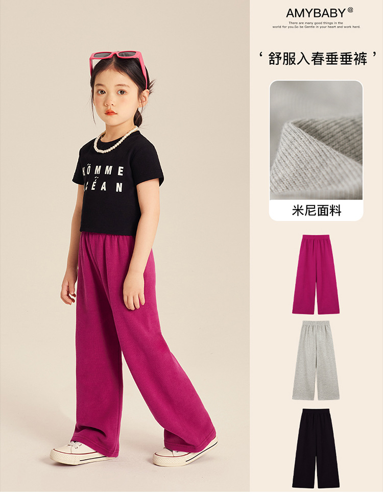 Amybaby 소녀의 캐주얼 바지 2024 새로운 서양식 간단한 올 매치 바지 캔디 컬러 스포츠 바지