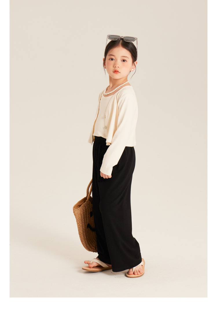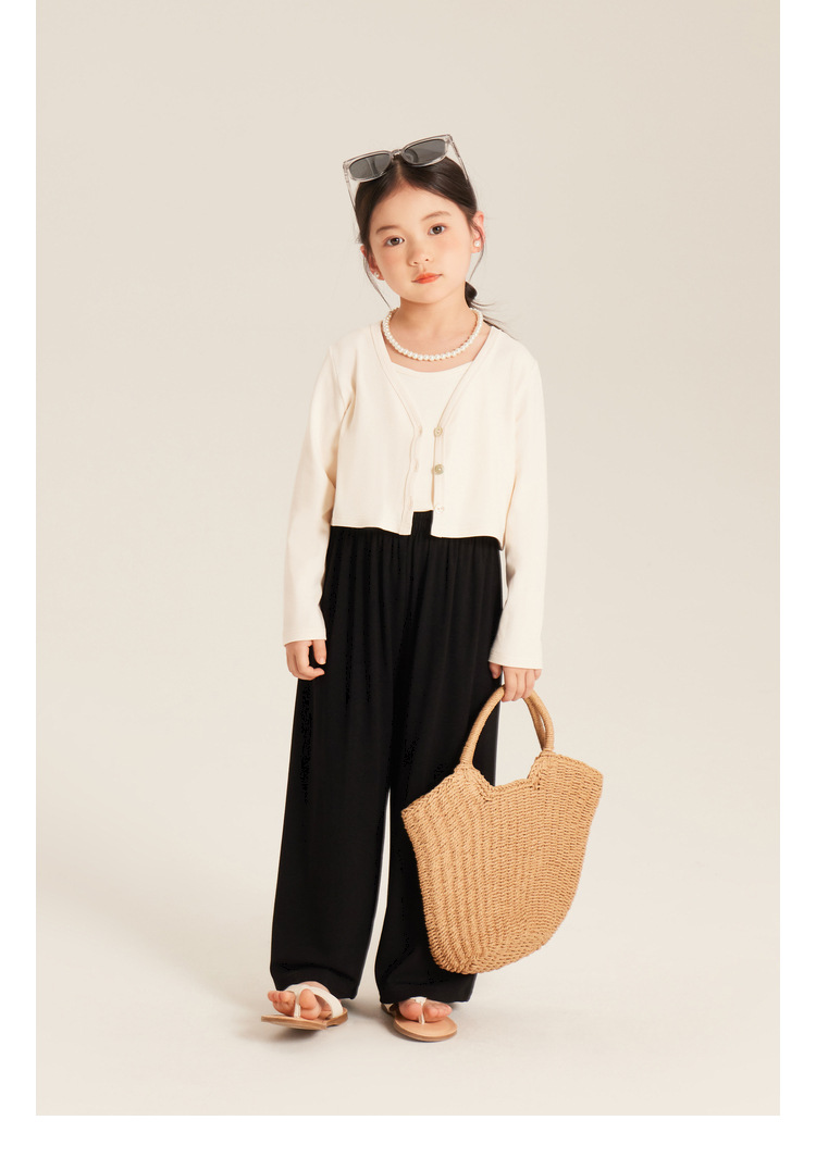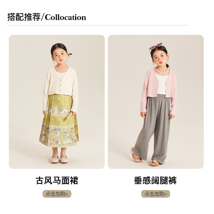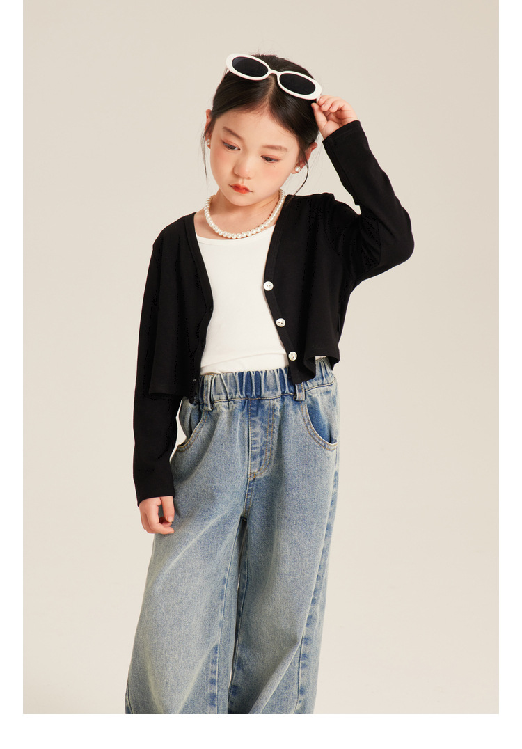 Amybaby Girls 'Coat 2024 새로운 어린이 V-Neck 긴 소매 올 매치 니트 편안한 통기성 카디건 탑스토어 가기