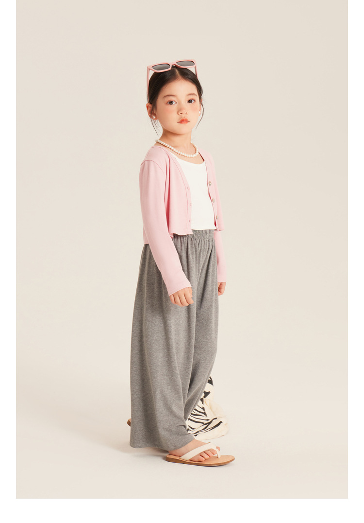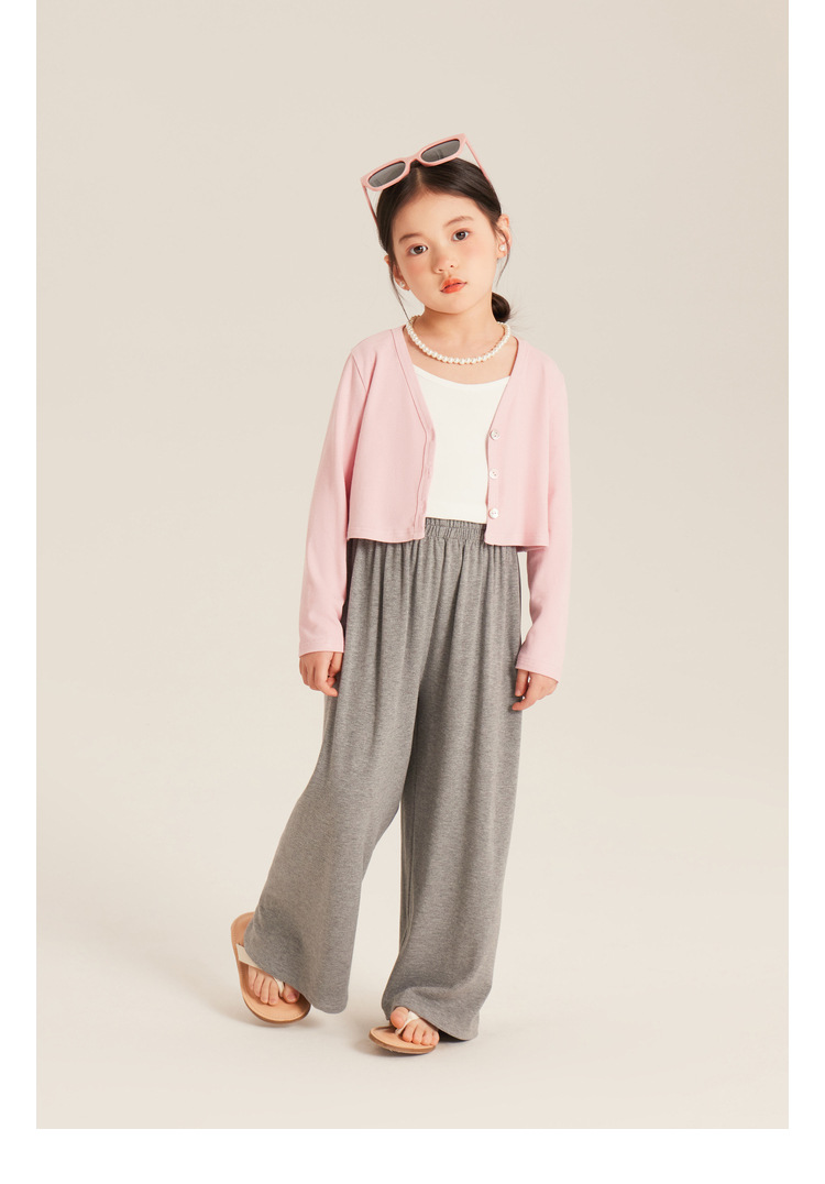 Amybaby Girls 'Coat 2024 새로운 어린이 V-Neck 긴 소매 올 매치 니트 편안한 통기성 카디건 탑