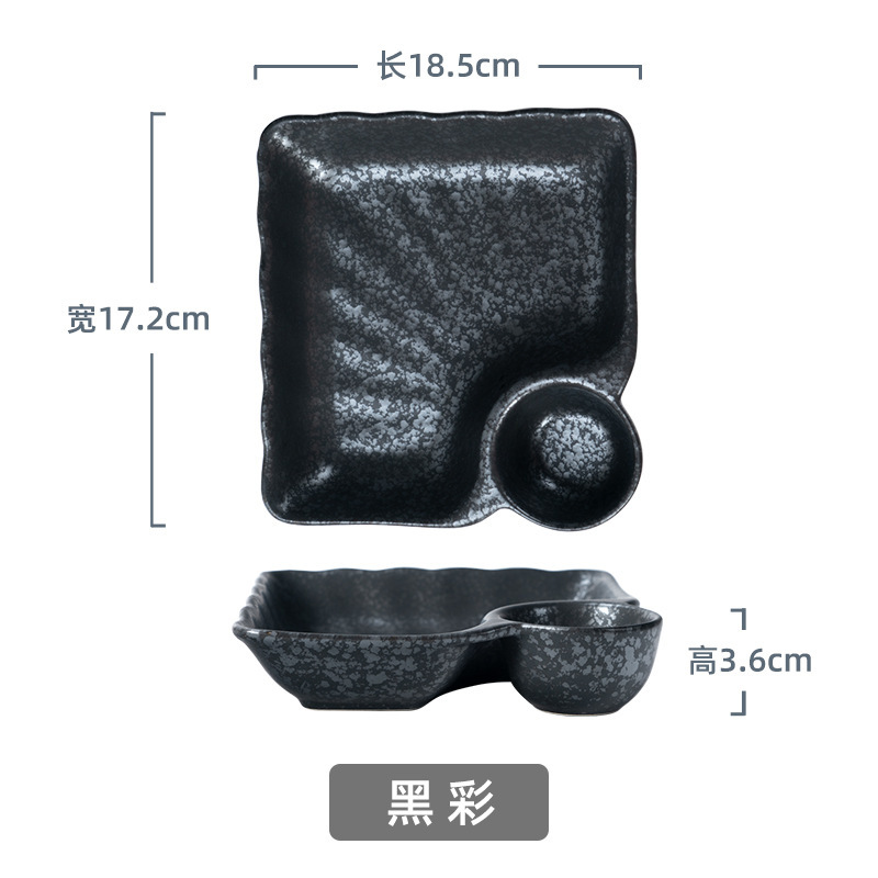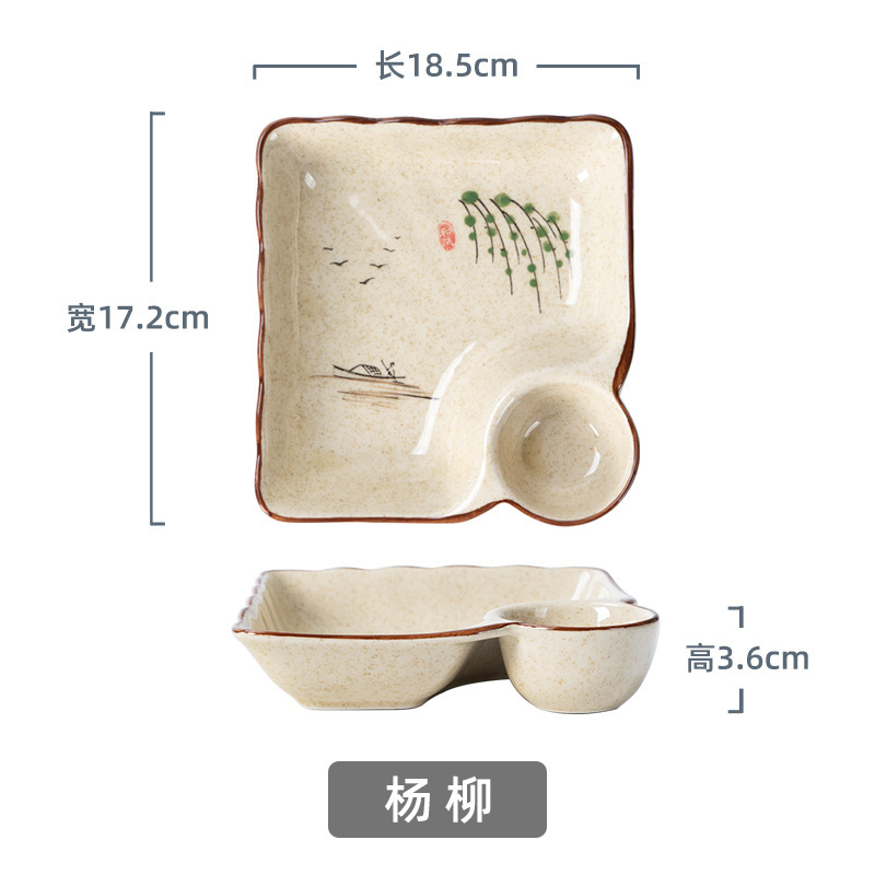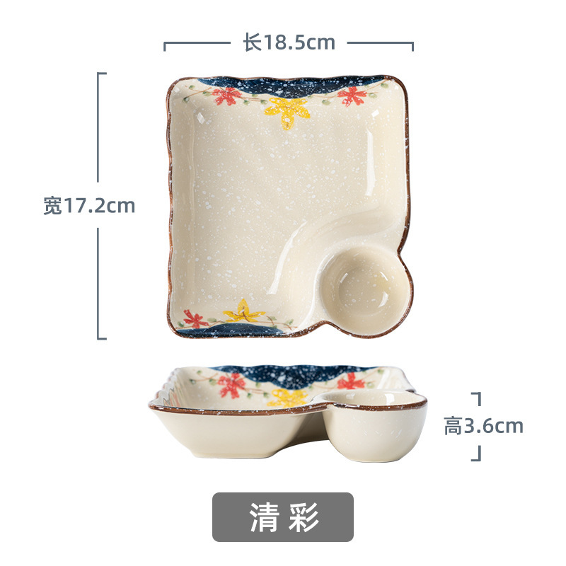 日式陶瓷饺子盘带醋碟手绘圆盘分格盘蘸料碟菜盘家用圆形寿司盘子