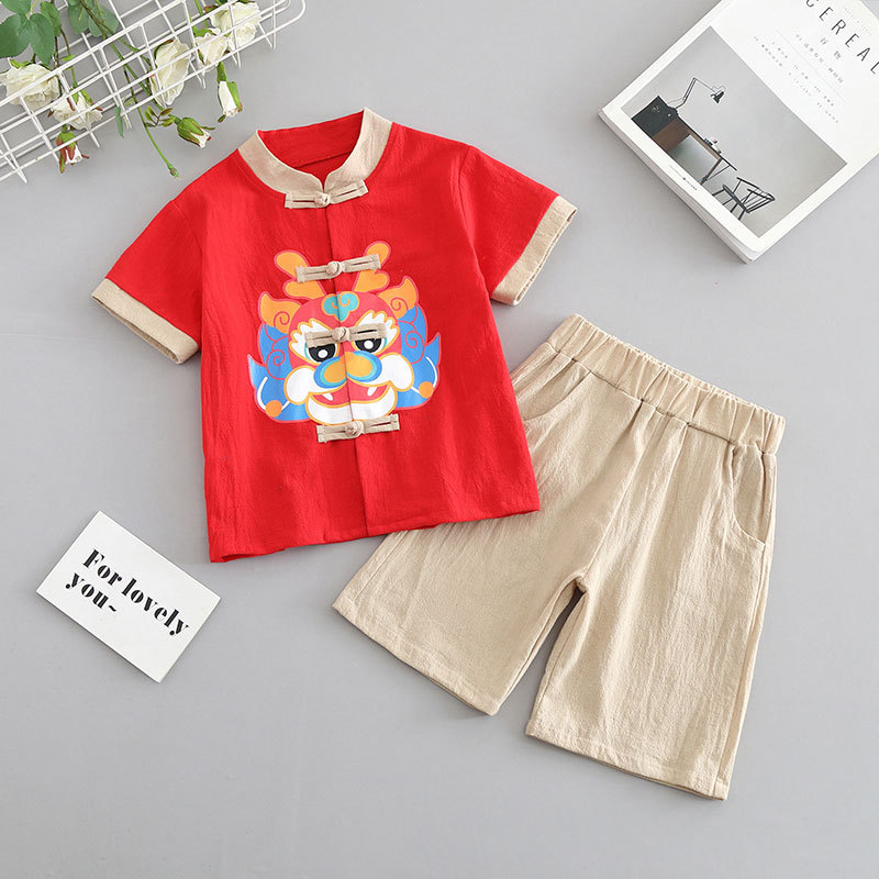 한푸소년 여름 세트 어린이 여름 반소매 탕 세트 새로운 중국 아동복 국가 스타일 공연 세트