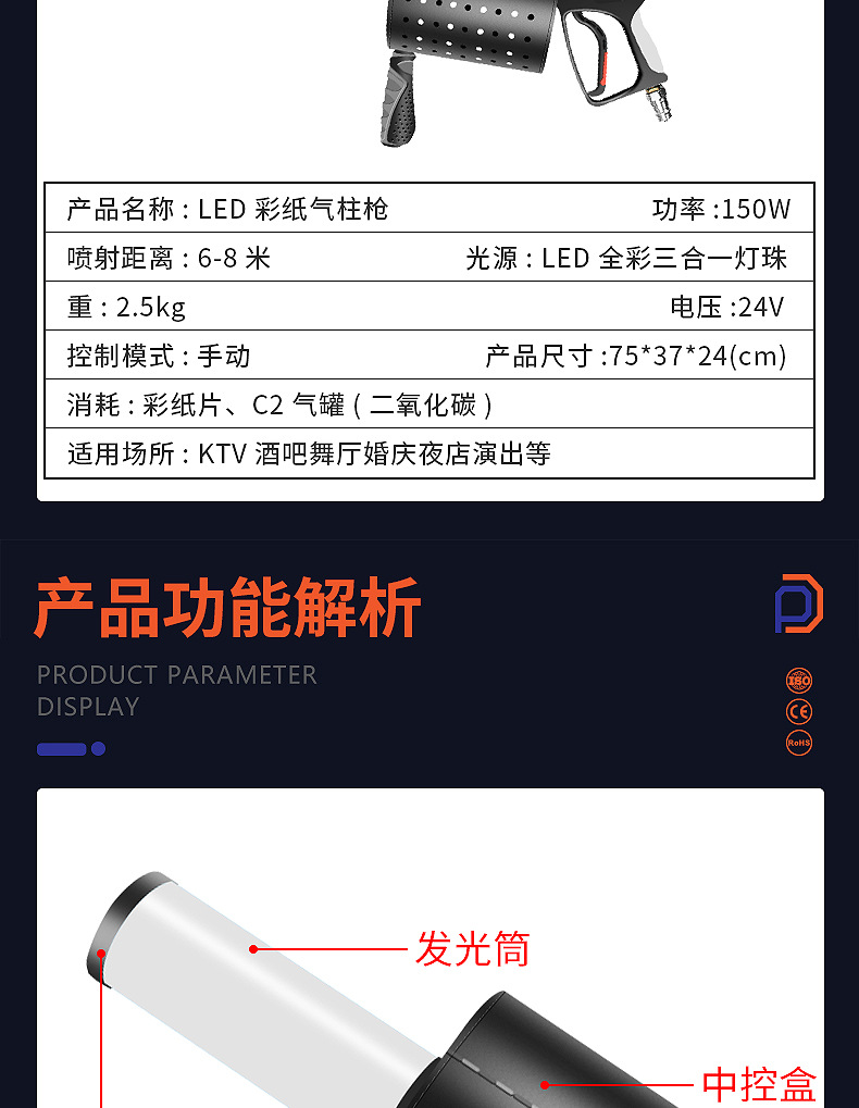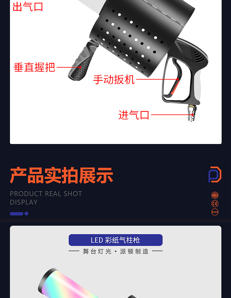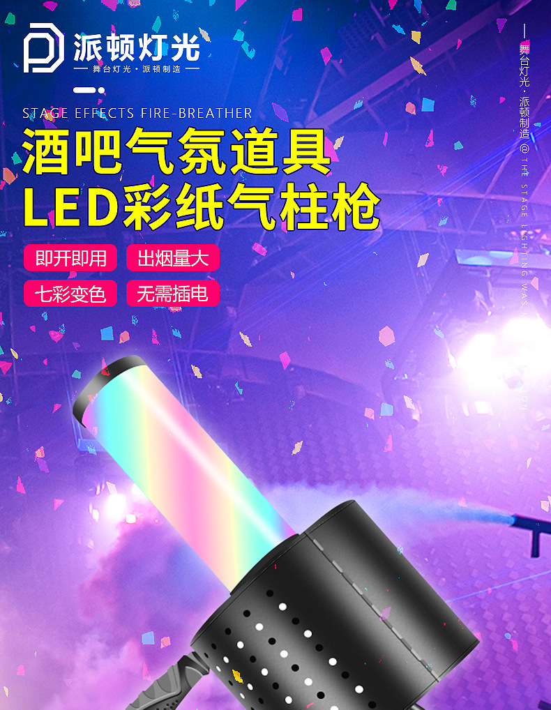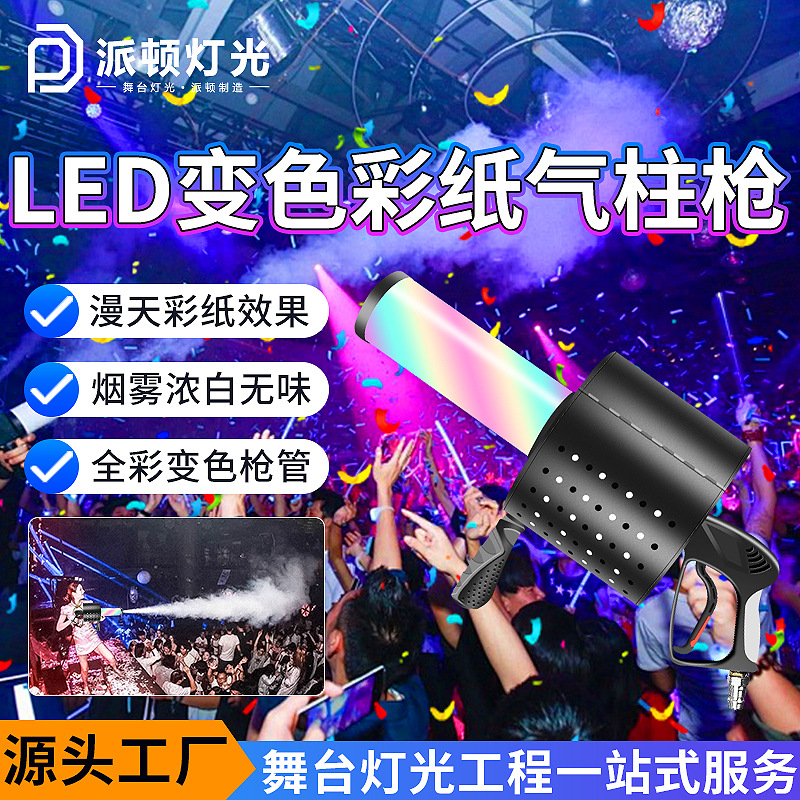 패튼 LED 컬러 종이 공기 칼럼 총 무대 바 DJ 핸드 헬드 연기 총 CO2 드라이 아이스 건 이산화탄소 컬러 종이 건