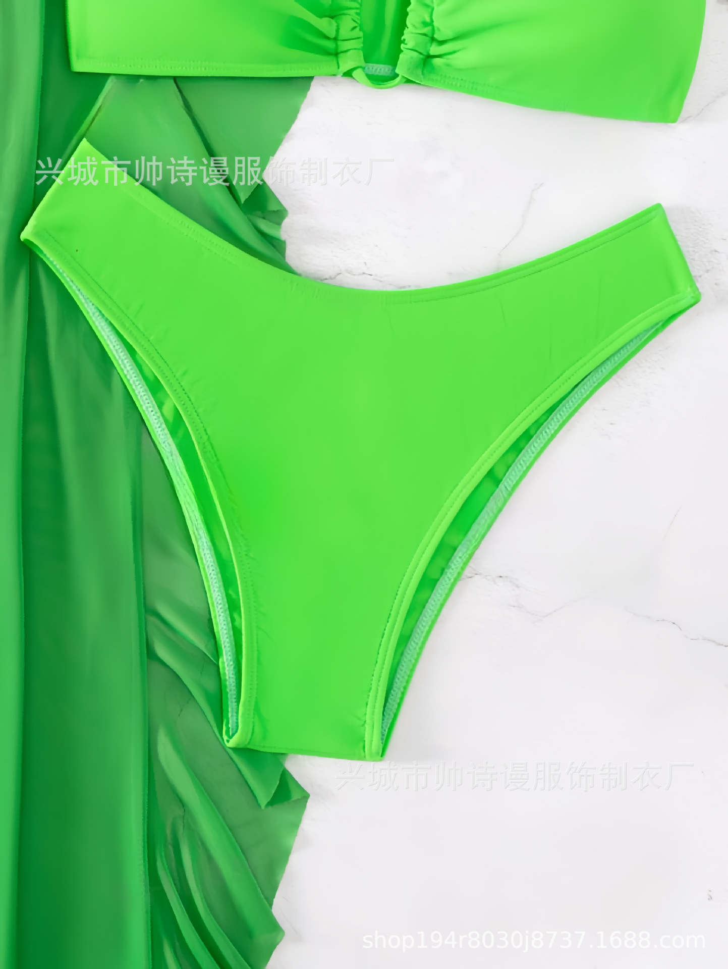 국경 2024 유럽과 미국의 새로운 단색 메쉬 플래시 바지 크로스 수집 아마존 3 피스 수영복 도매