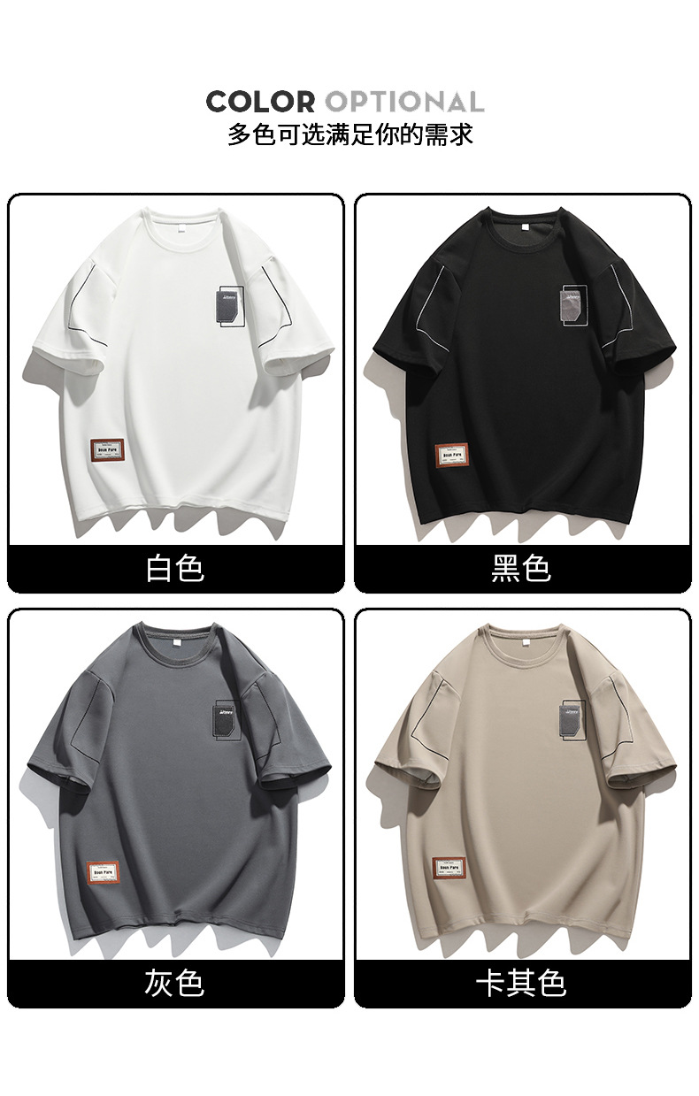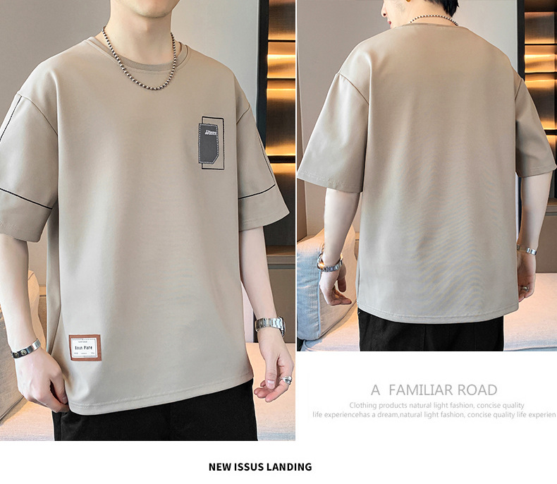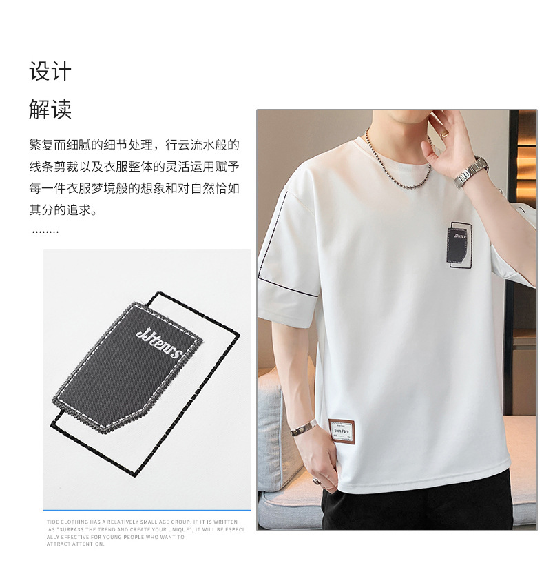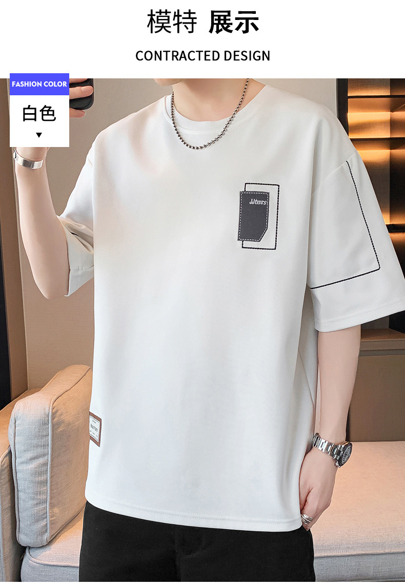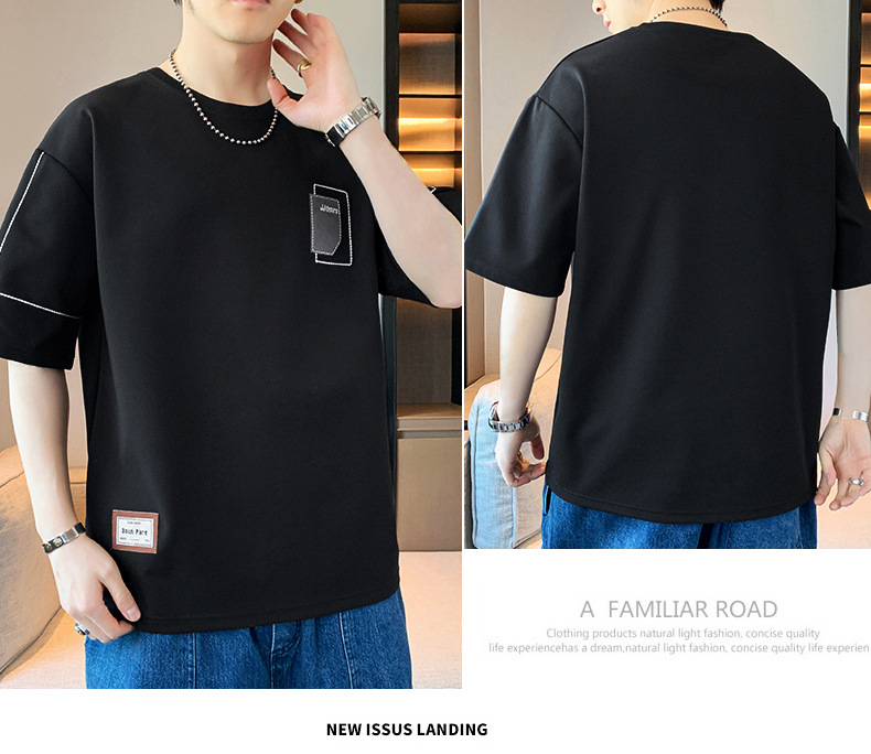 여름 트렌디 한 홍콩 스타일 남성 자수 크루 넥 반팔 티셔츠 통통한 남성 플러스 사이즈 대형 루즈 단색 티셔츠스토어 가기