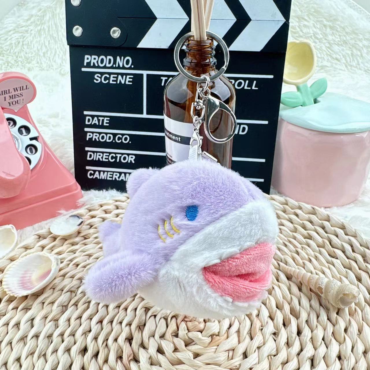 • 보라색 입 벌린 상어 인형 + 랜덤 색상 키링 1개