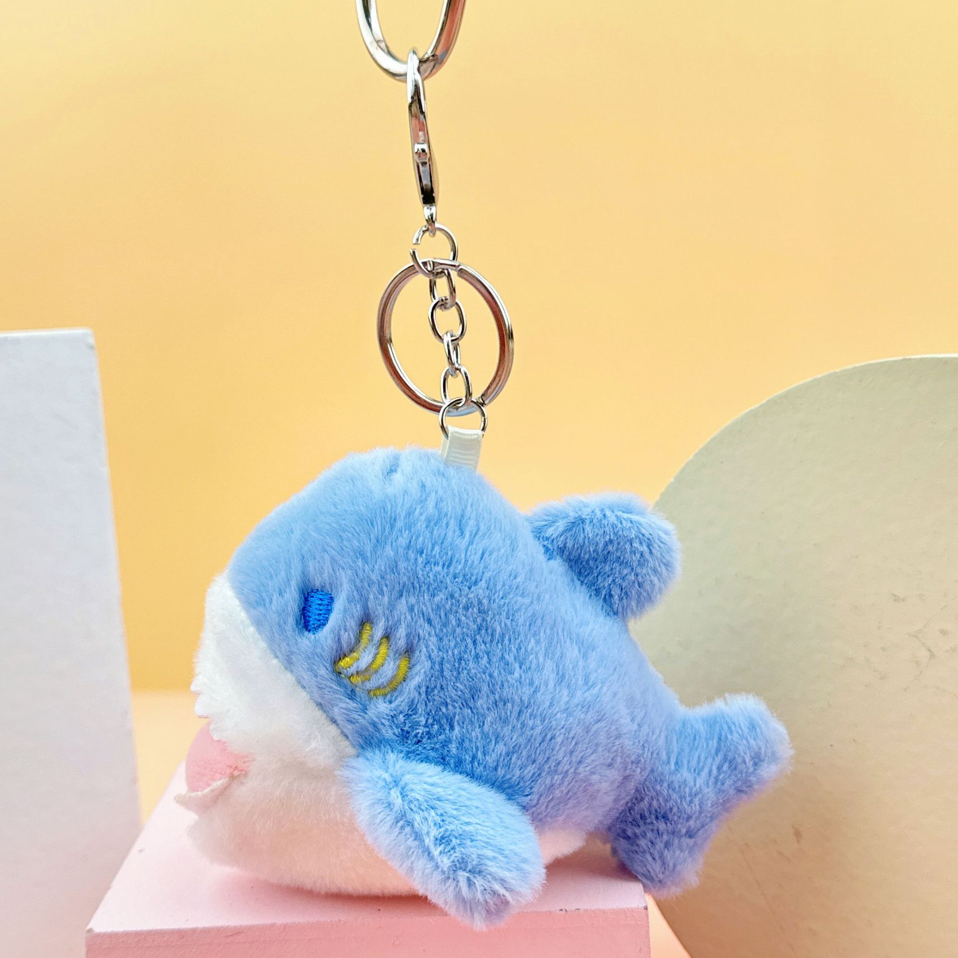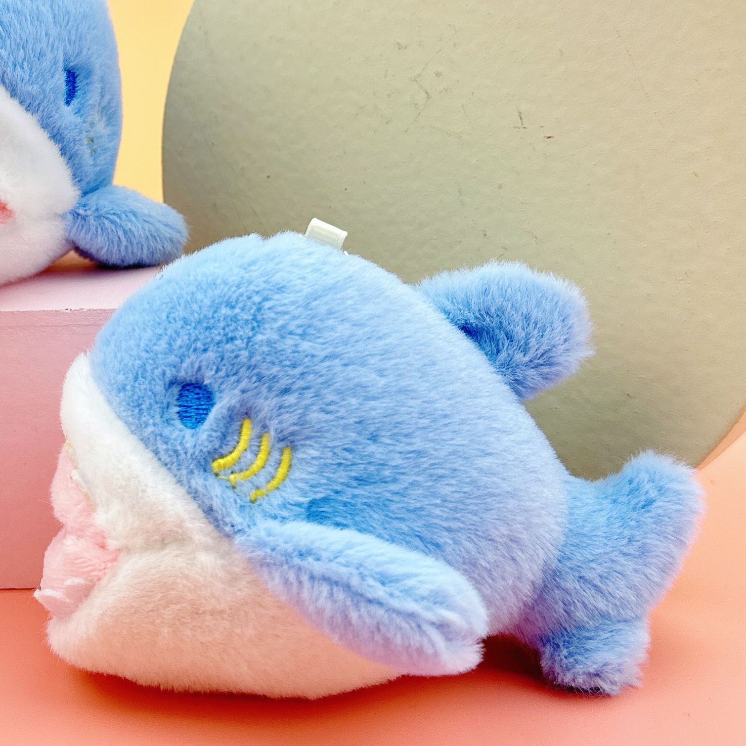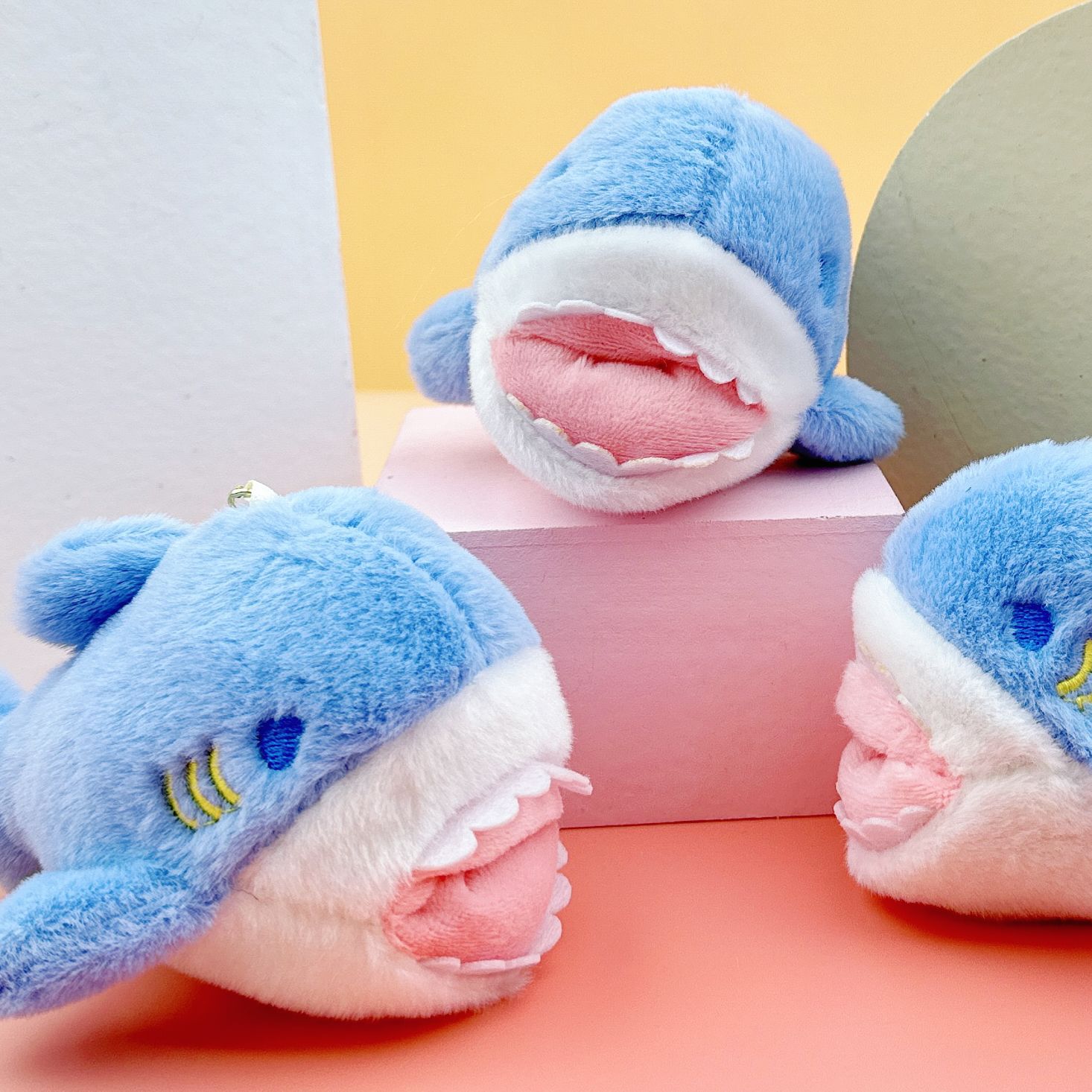 • 파란색 입 벌린 상어 인형 + 랜덤 색상 키링 1개