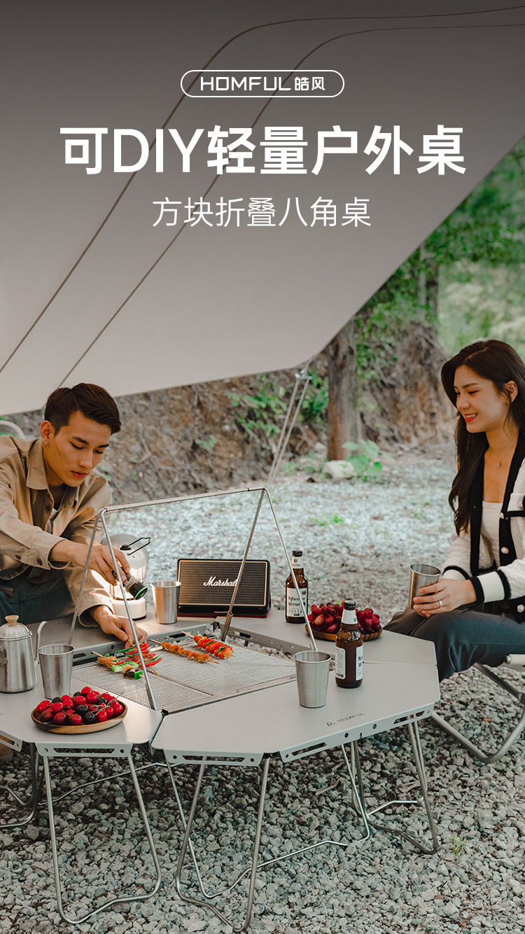 Homful 야외 알루미늄 합금 바베큐 캠프파이어 테이블 캠핑 접이식 조립형 다기능 테이블스토어 가기