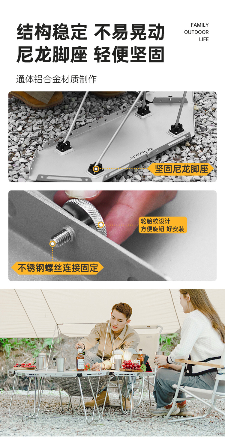 Homful 야외 알루미늄 합금 바베큐 캠프파이어 테이블 캠핑 접이식 조립형 다기능 테이블