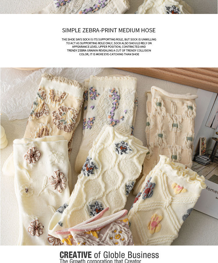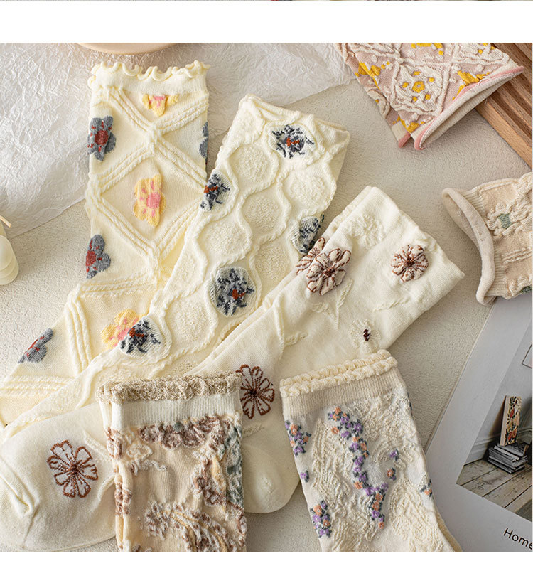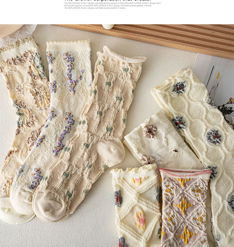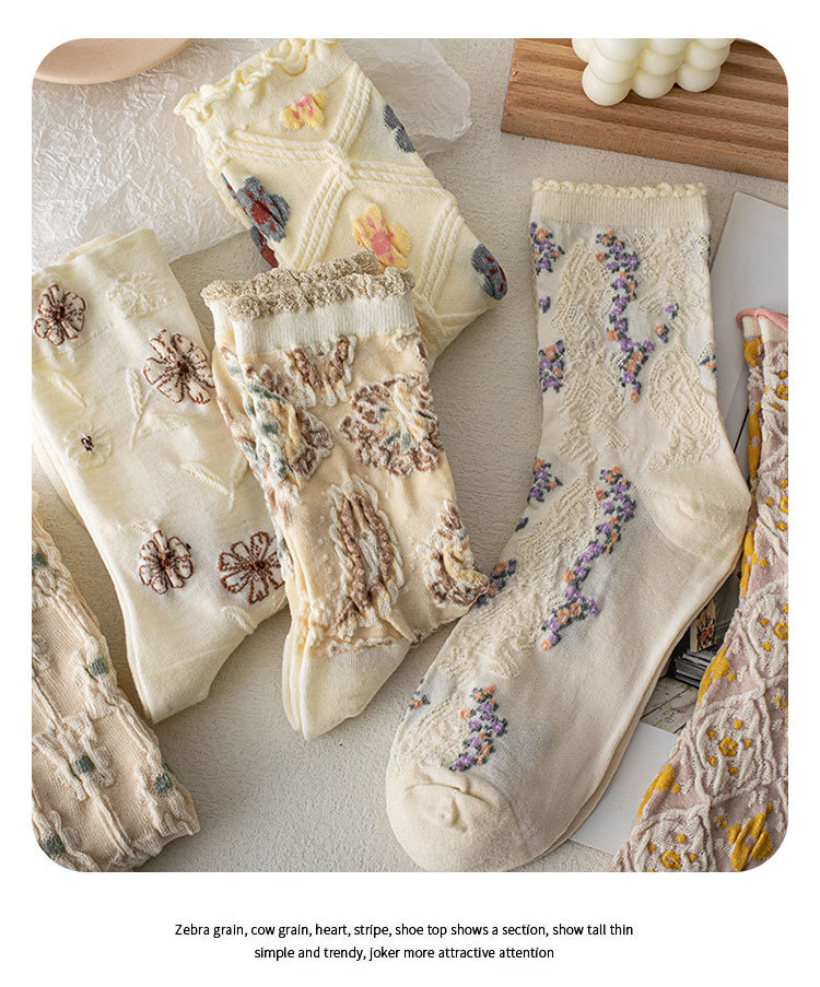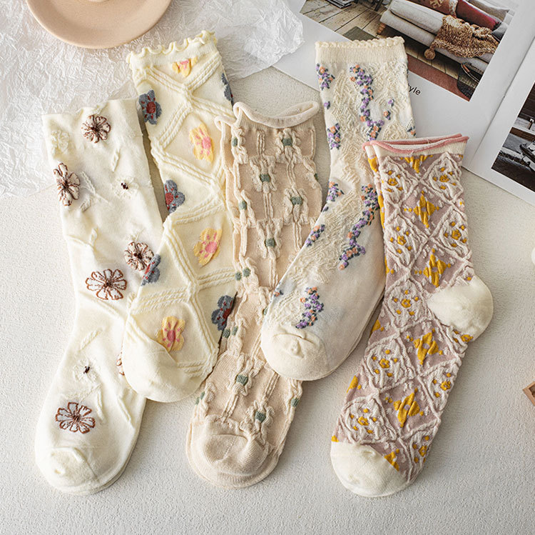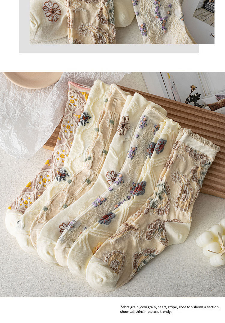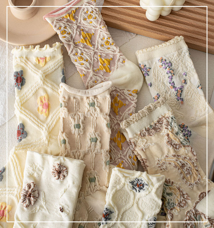 궁전 스타일 양말 여성 여름 얇은 모리 스타일 작은 꽃 스타킹 트렌디 한 올매치 빈티지 예술적 레이스 중간 길이의 스타킹