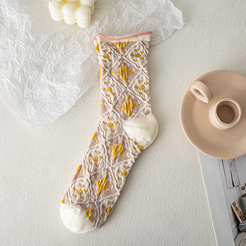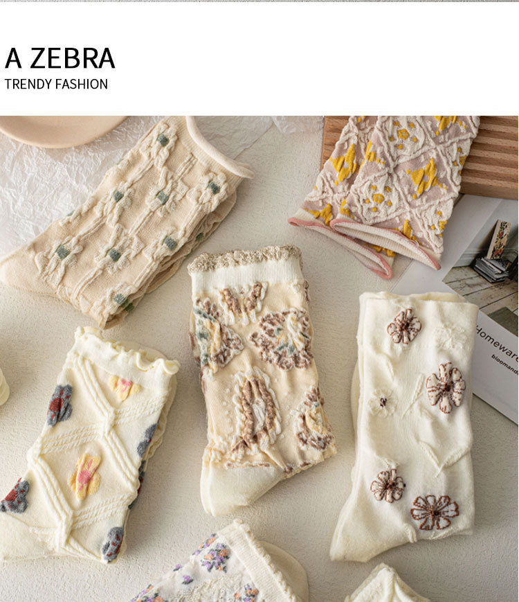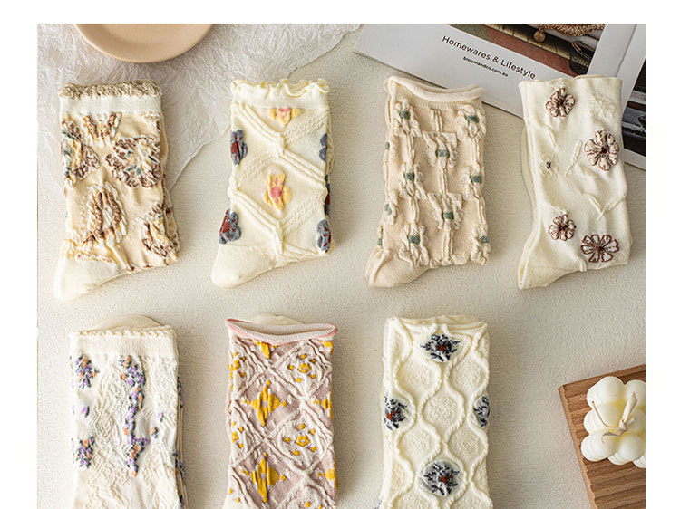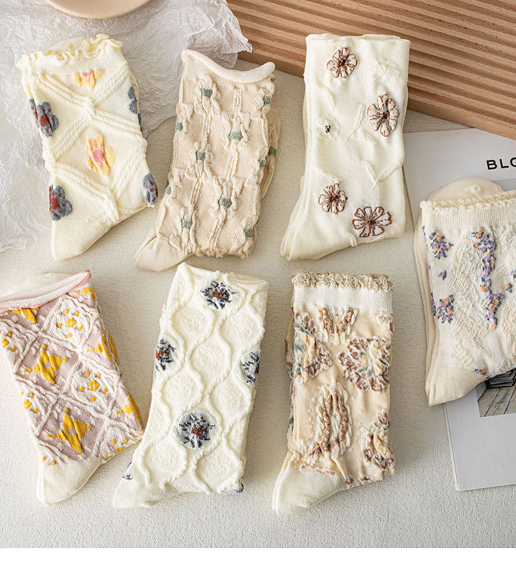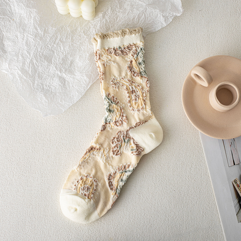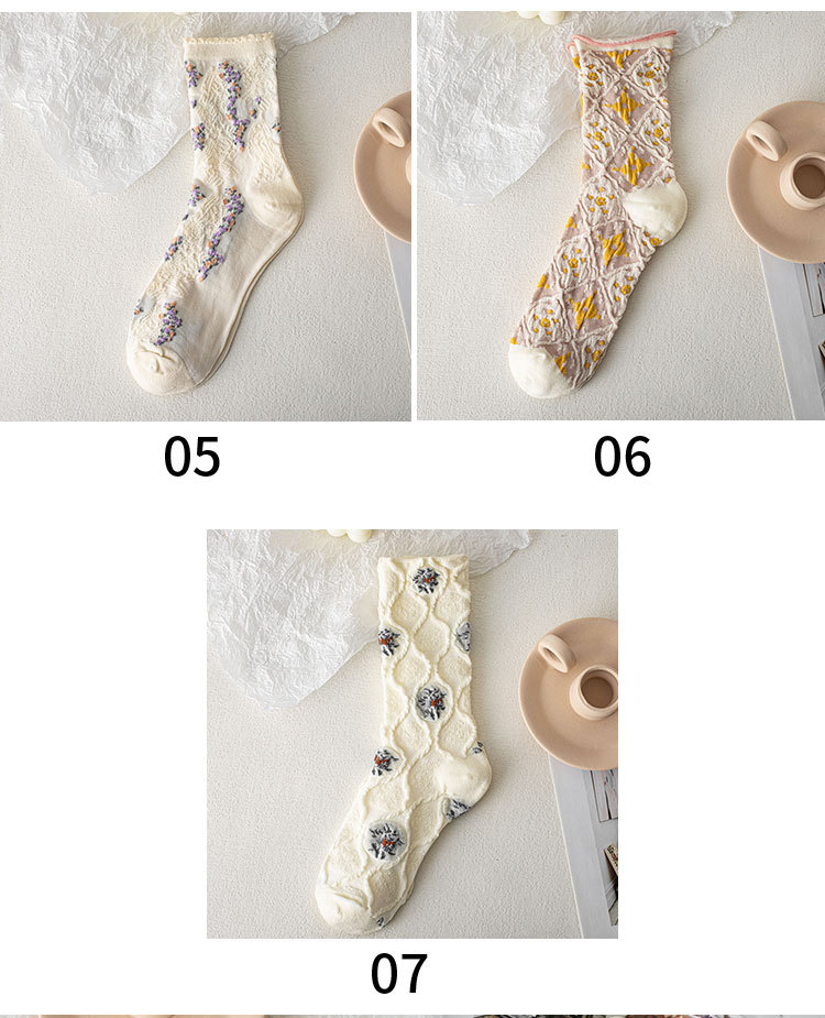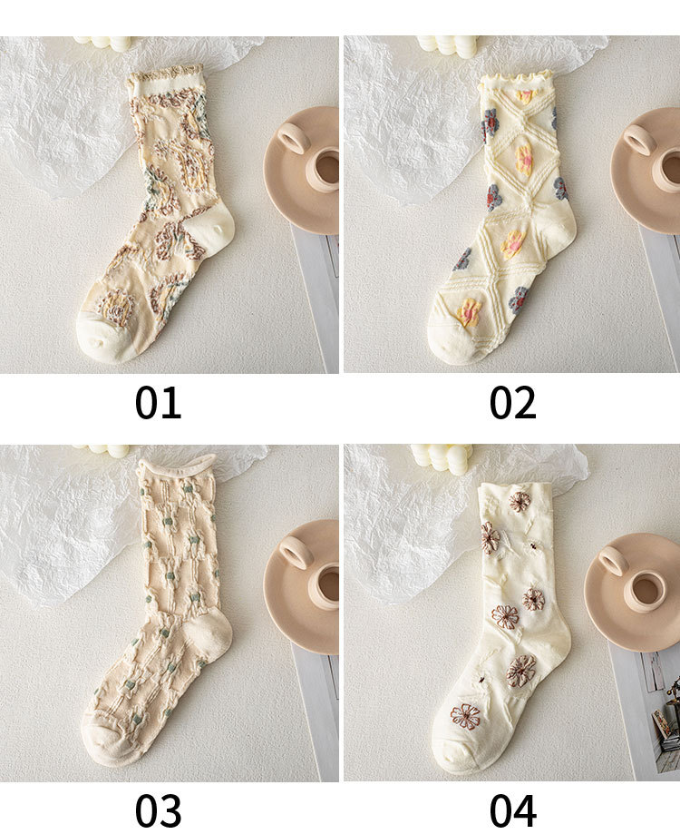 궁전 스타일 양말 여성 여름 얇은 모리 스타일 작은 꽃 스타킹 트렌디 한 올매치 빈티지 예술적 레이스 중간 길이의 스타킹