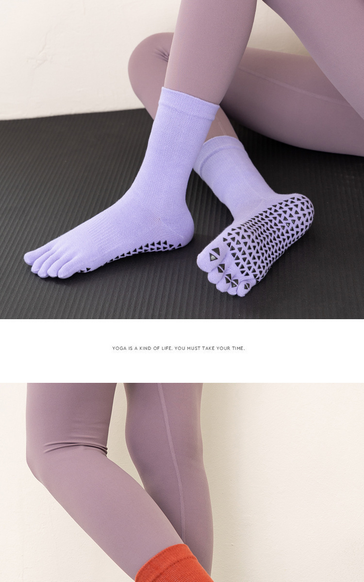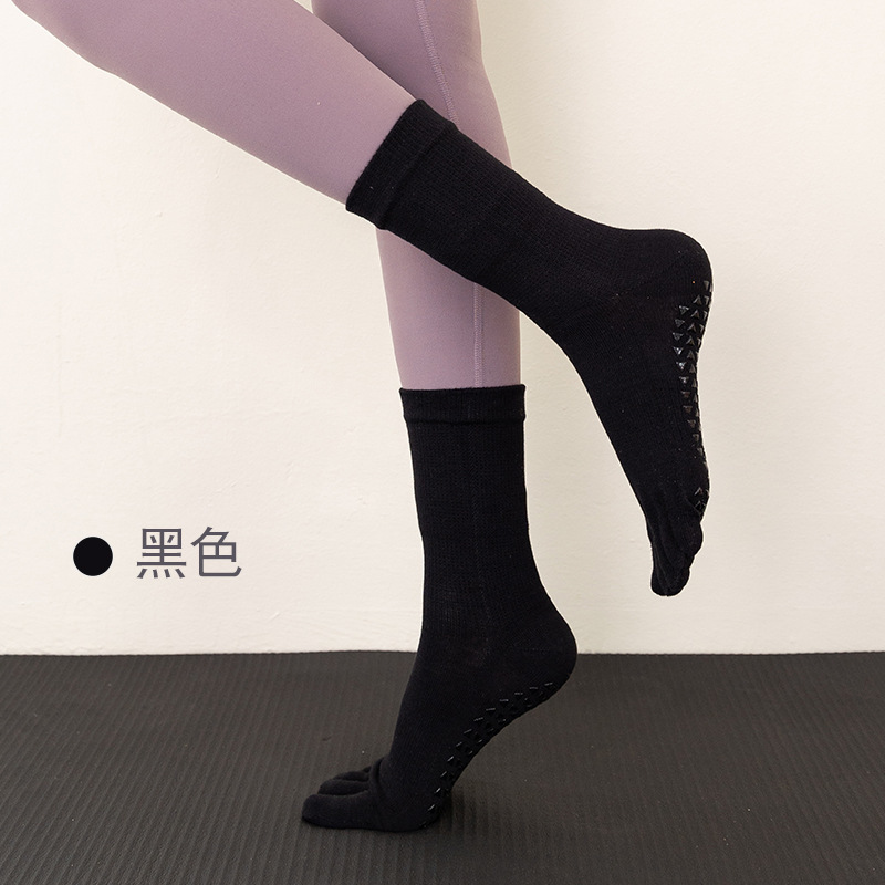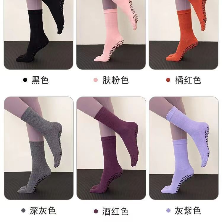 요가 양말 전문 비 슬립 사계절 유니버설 실내 스포츠 피트니스 댄스 양말 면화 땀 흡수성 필라테스 다섯 손가락 양말