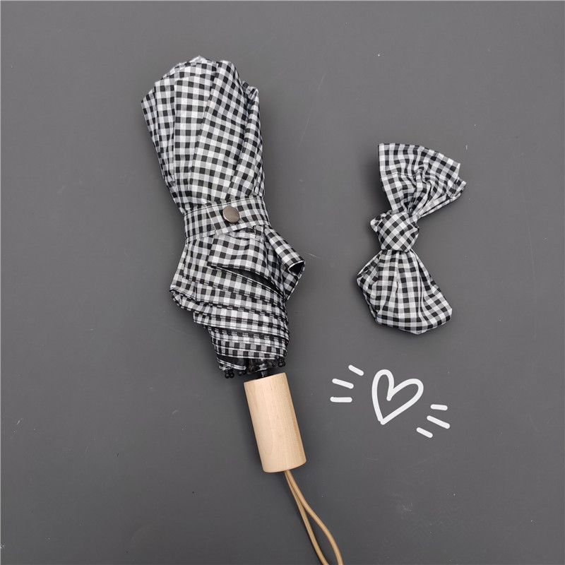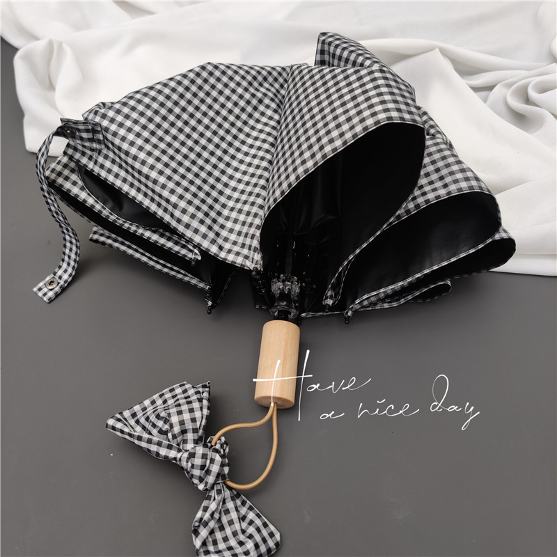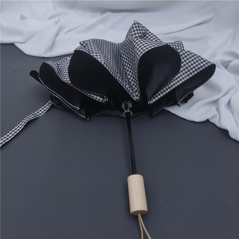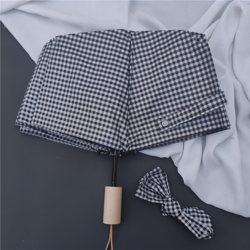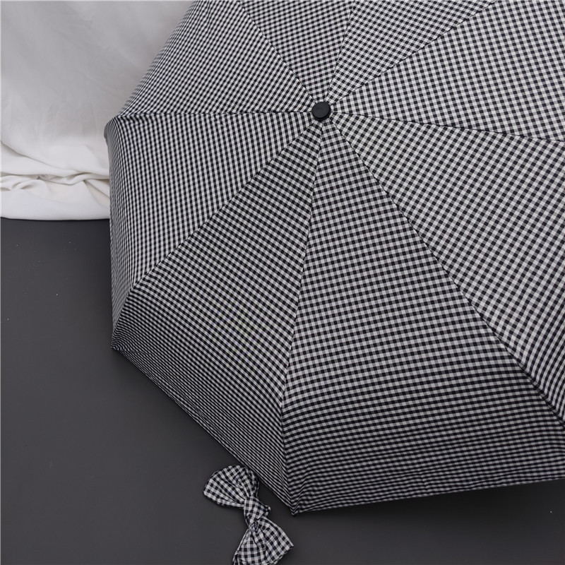 검은 색과 흰색 격자 무늬 색상 금욕 스타일 블랙 고무 양산 선 스크린 접히는 이중 사용 우산 간단한 클래식 더러운 저항
