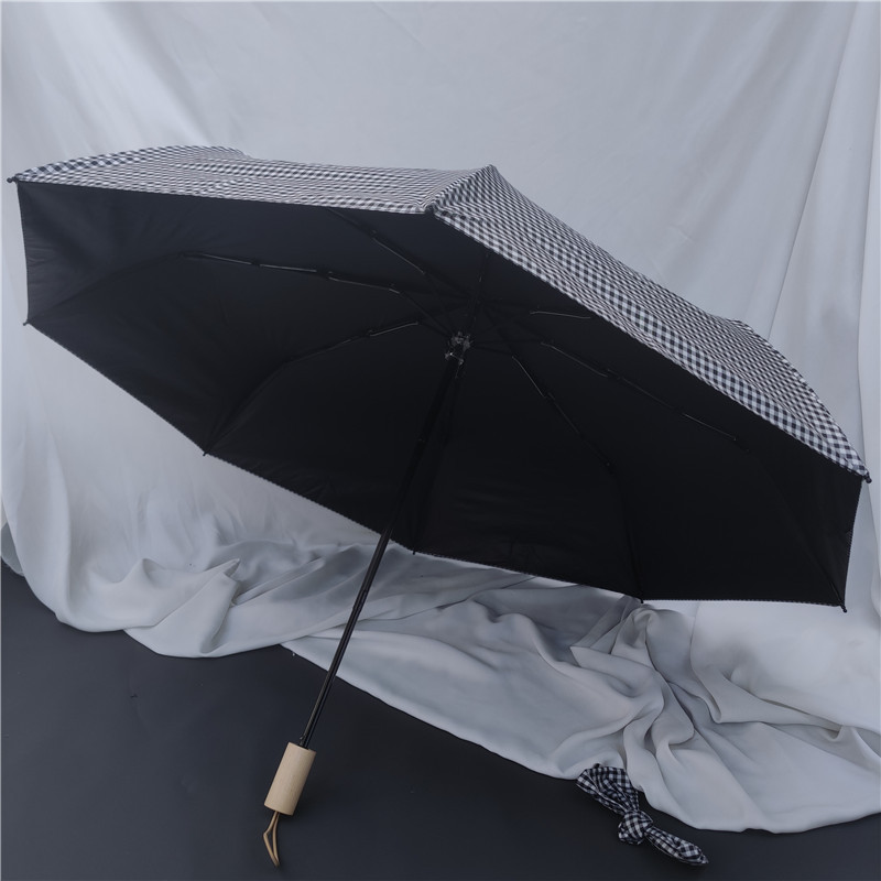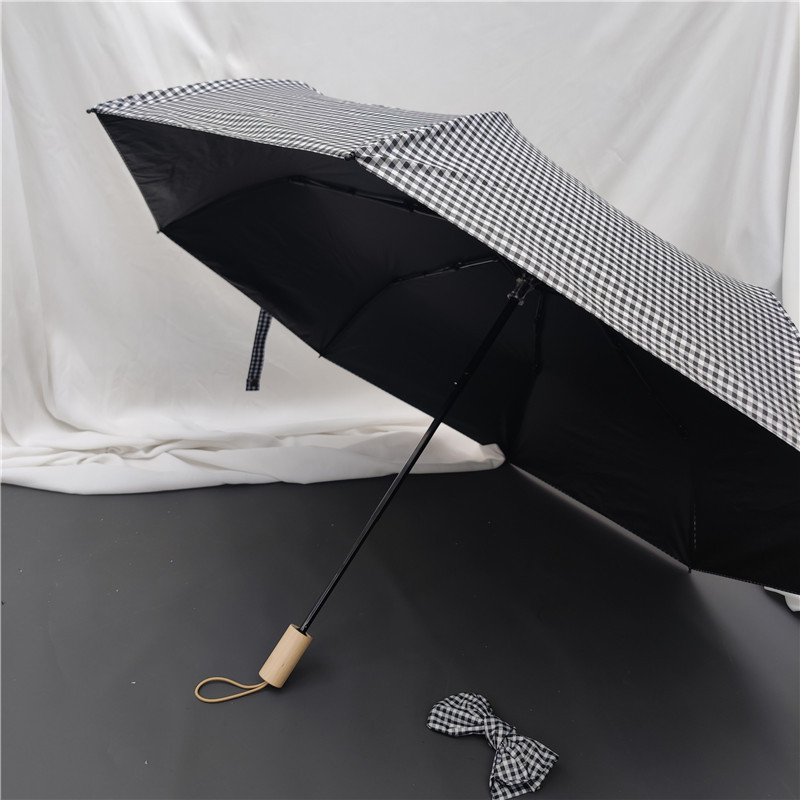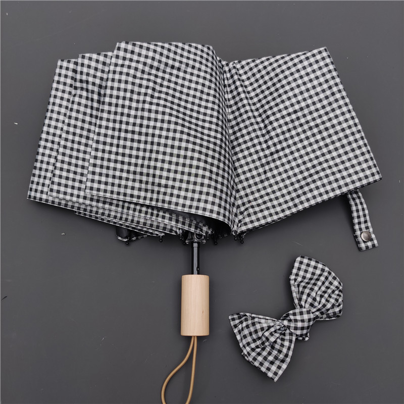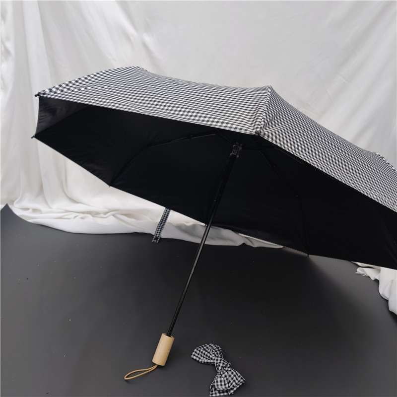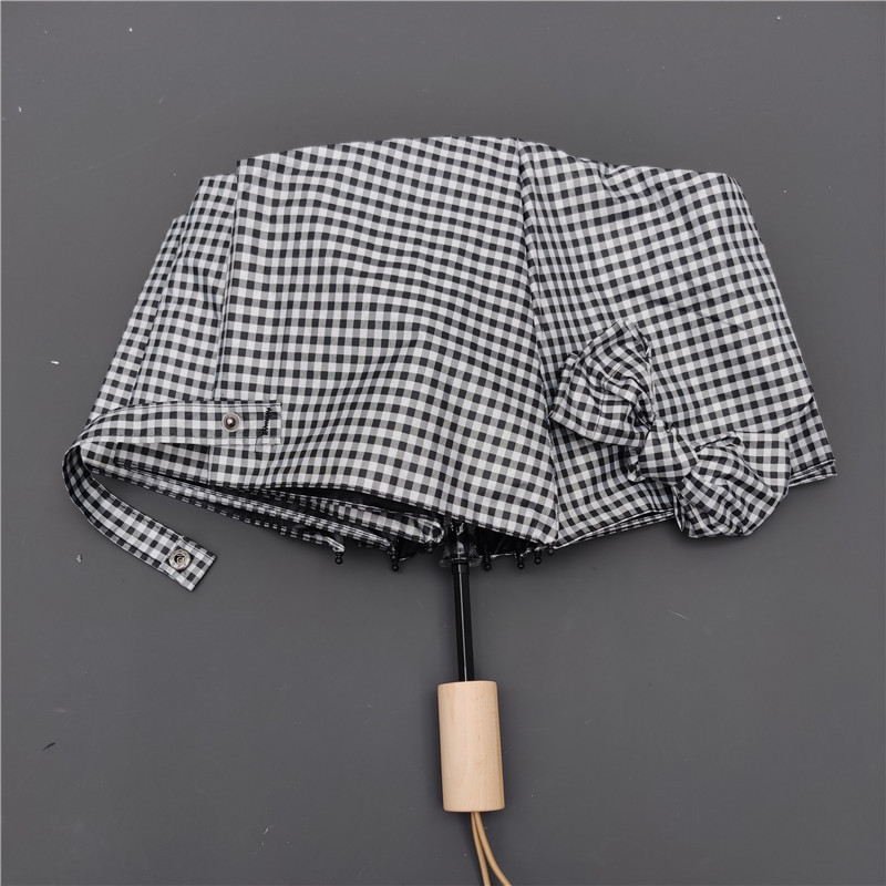검은 색과 흰색 격자 무늬 색상 금욕 스타일 블랙 고무 양산 선 스크린 접히는 이중 사용 우산 간단한 클래식 더러운 저항