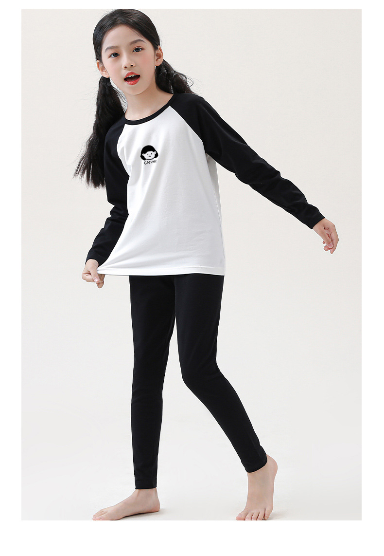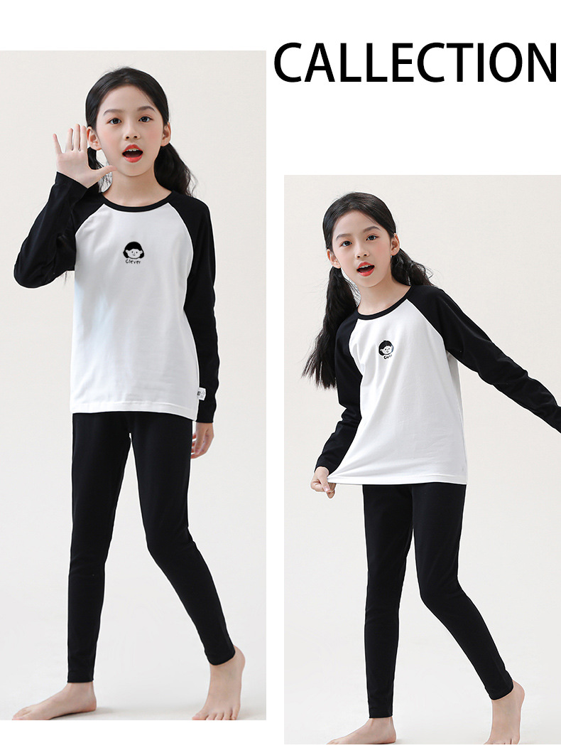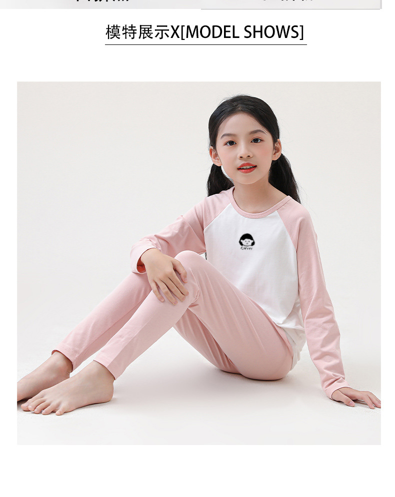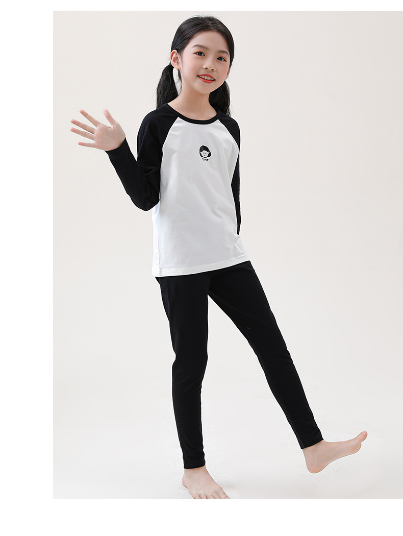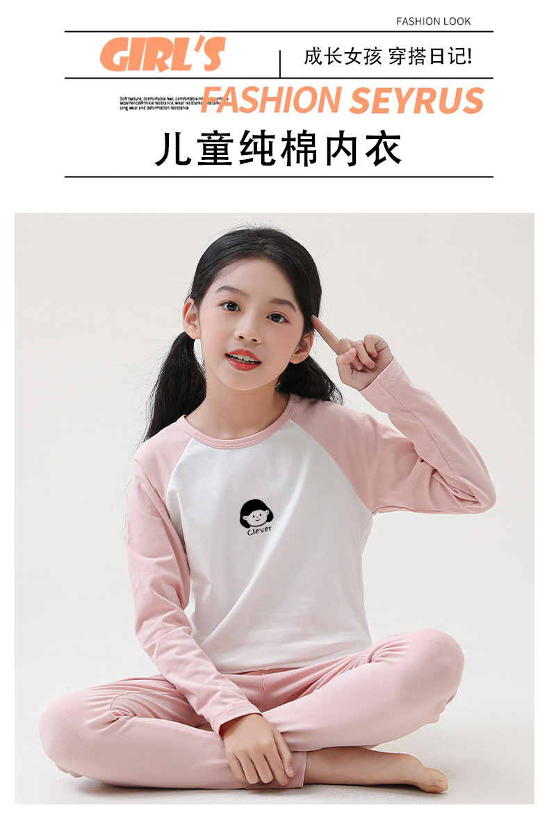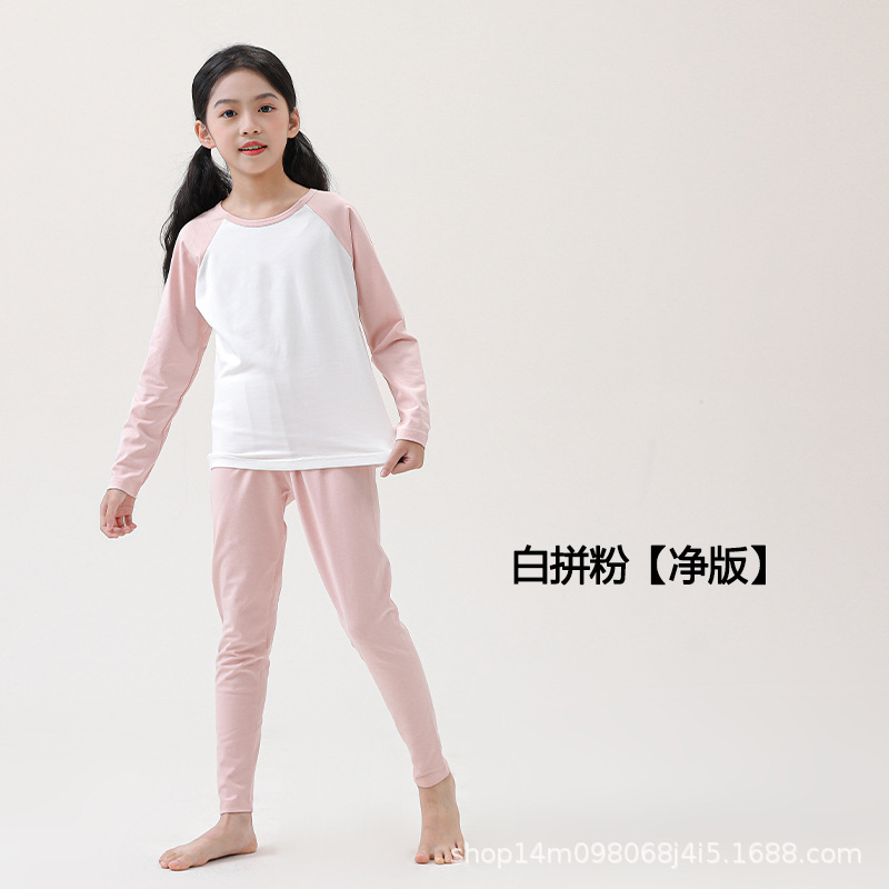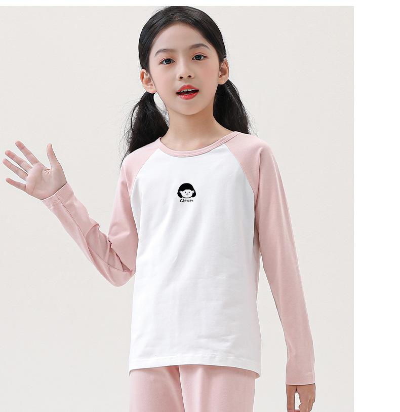 학생 면화 속옷 플러그인 슬리브를 입고 큰 어린이 가정 옷 잠옷베이스 세트 어린이 순수면 가을 옷과 바지
