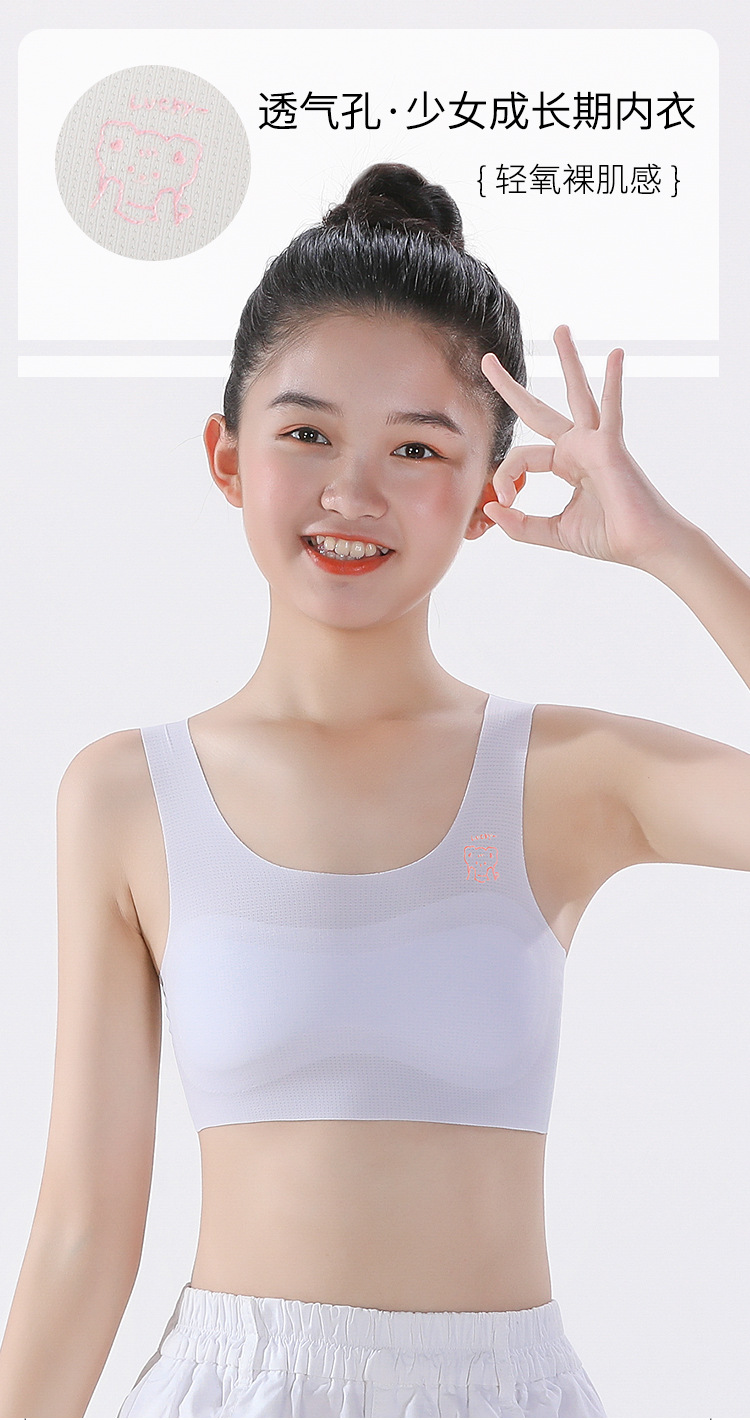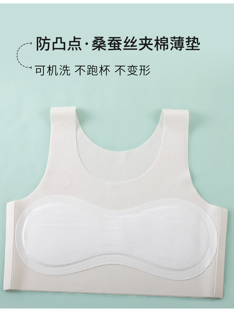 성장하는 여자 Traceless 속옷 여자 뽕나무 실크 코튼 얇은 패드 주니어 고등학교 초등학교 학생 브래지어 경량급 호흡