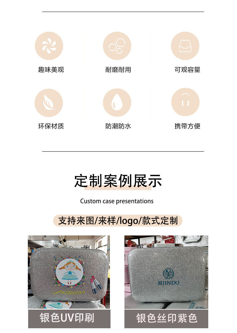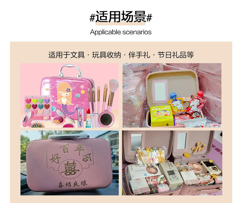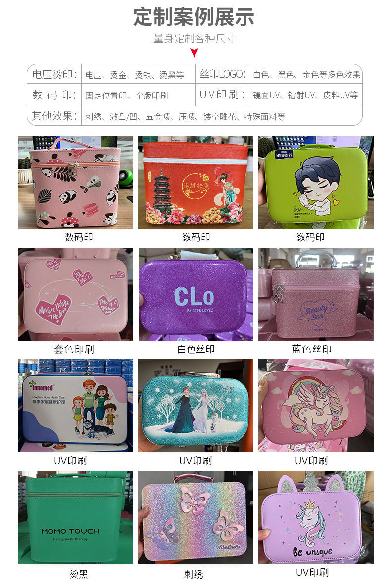 맞춤형 화장품 상자 어린이 화장품 장난감 수납 상자 반짝이 글자 화장품 가방 PU 가죽 수납 상자 아마존