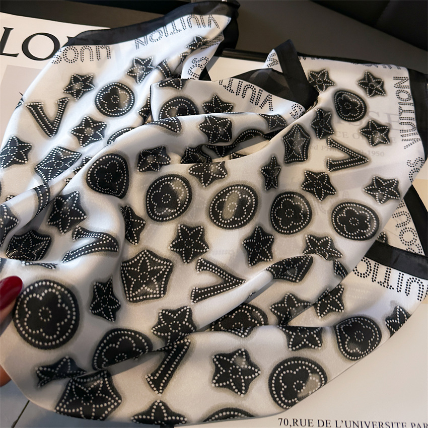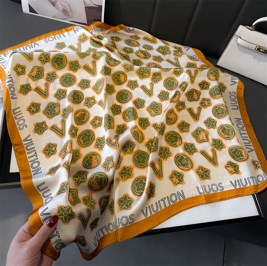 가벼운 럭셔리 실크 스카프 여성 편지 장로교 스카프 모방 실크 스퀘어 스카프 70cm 패션 올 매치 스카프 다목적 목도리