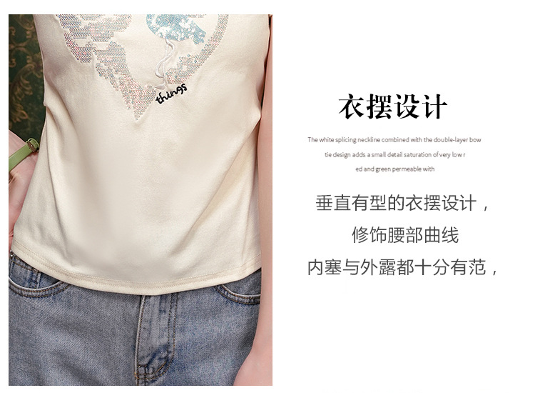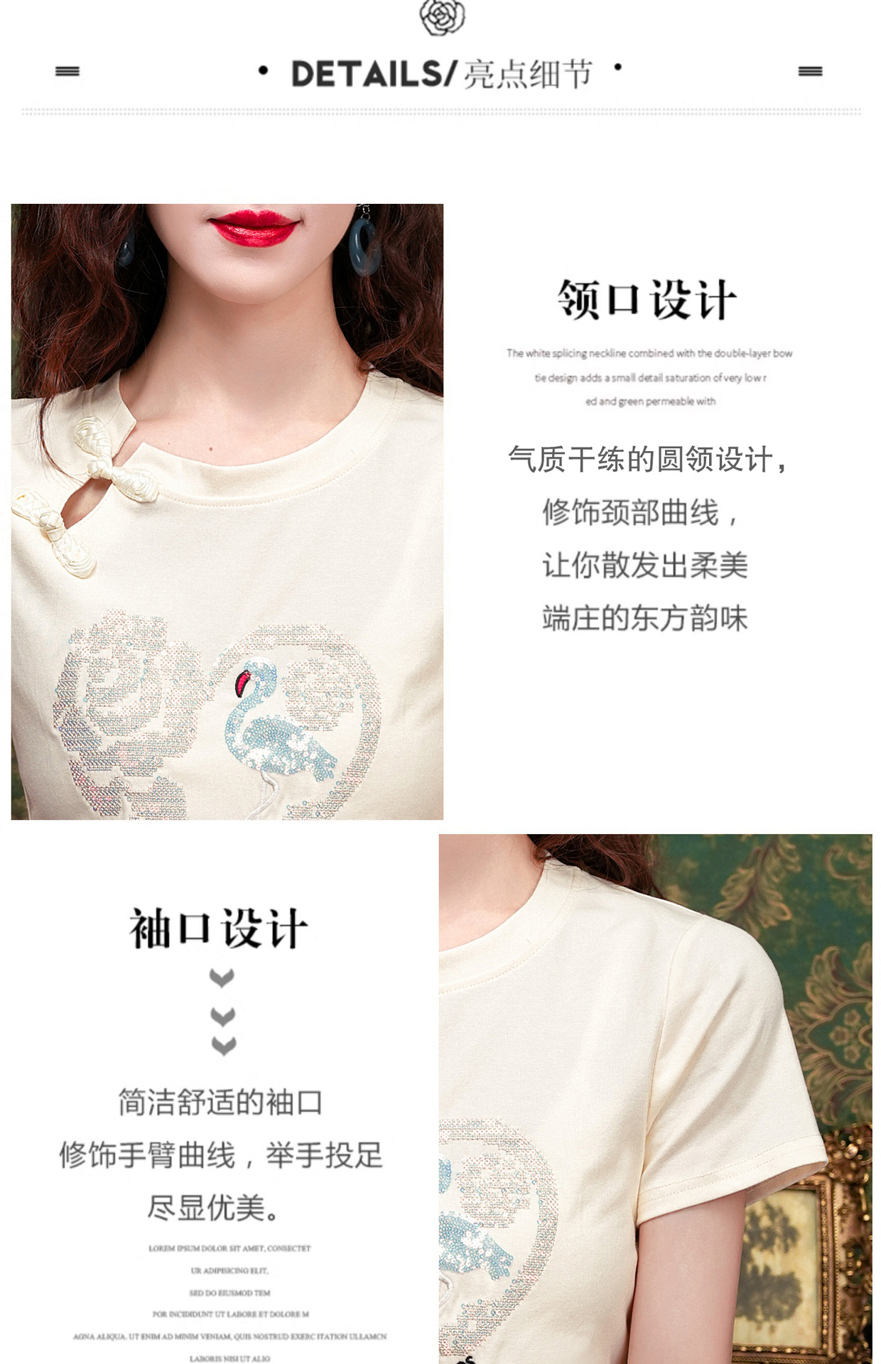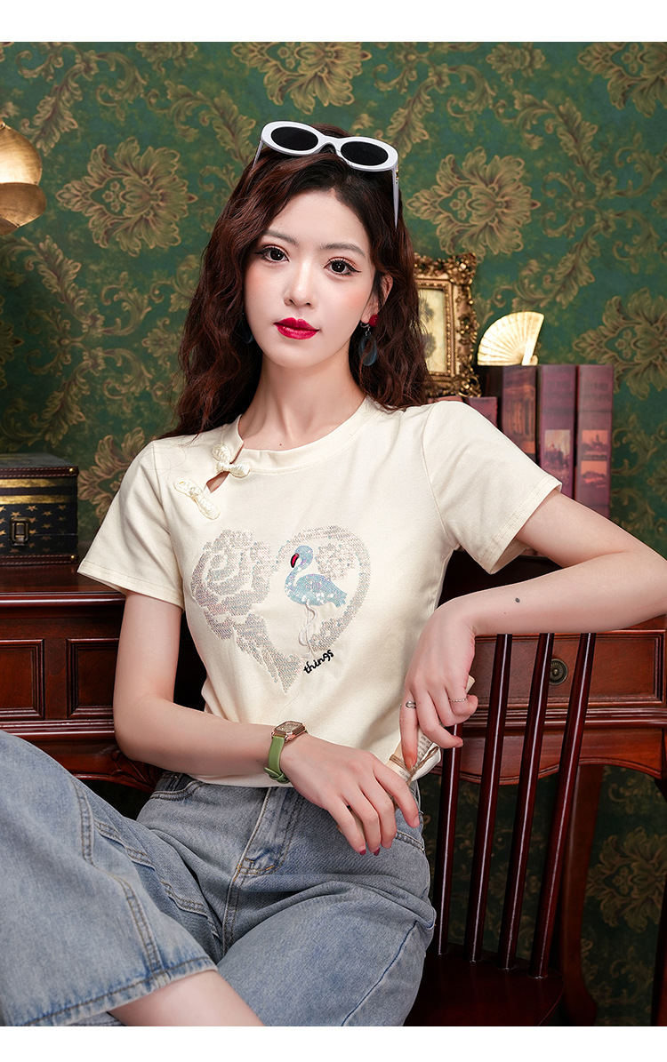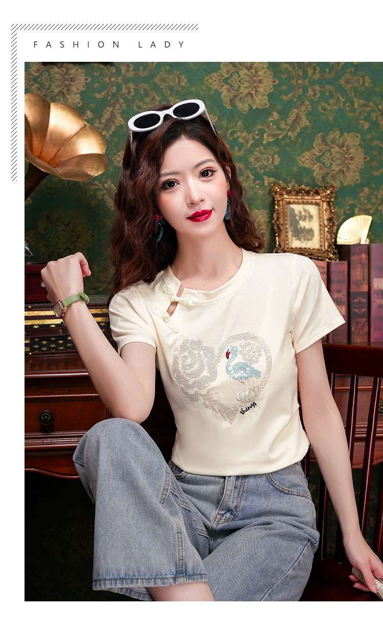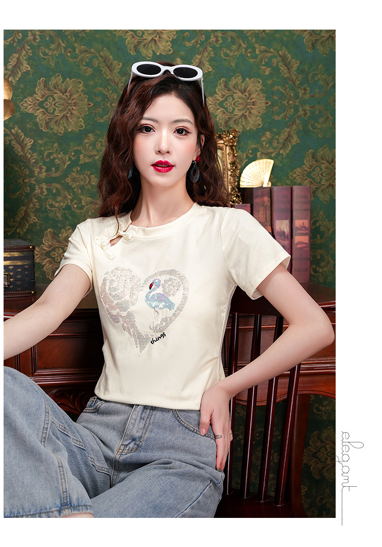 살구색 반팔 티셔츠 여자 둥근 목 2024 여름 불규칙한 어깨 주름 허리 슬리밍 빈티지 버클 탑스토어 가기