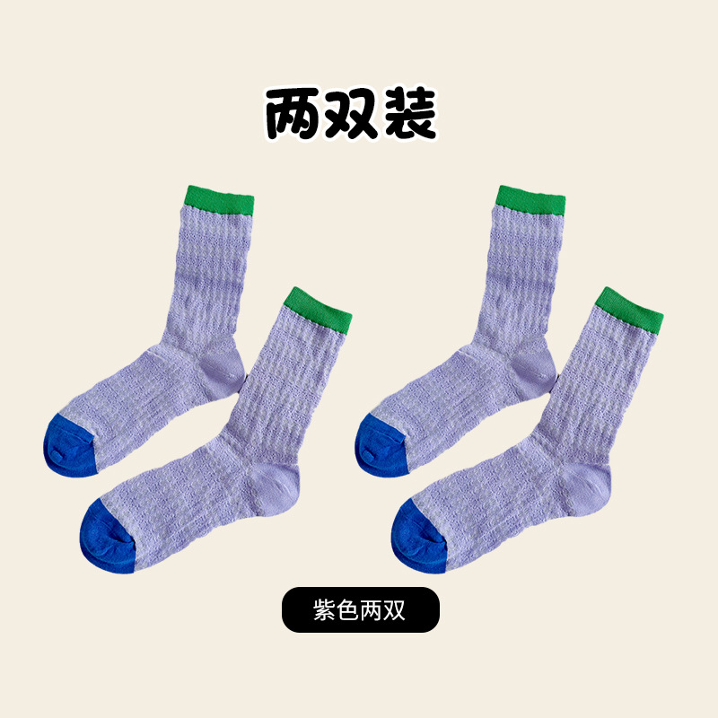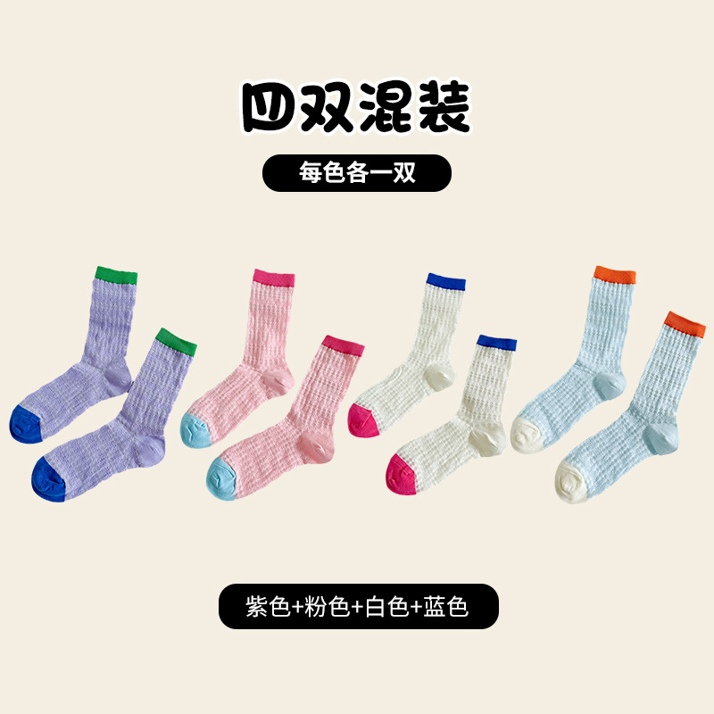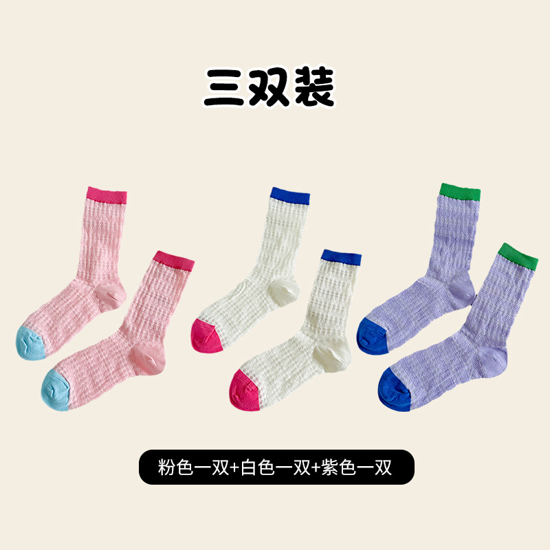 [조합] 원 버튼 샵 ~ 컬러 대비 양말 여성 여름 얇은 메쉬 튜브 양말, 조수 더미 양말