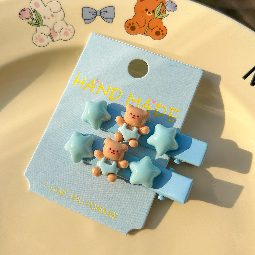 2 팩! 블루 베어 러브 헤어핀 ~ 달콤한 소녀 클라우드 활 BB 클립 사이드 클립 헤어 헤드웨어스토어 가기