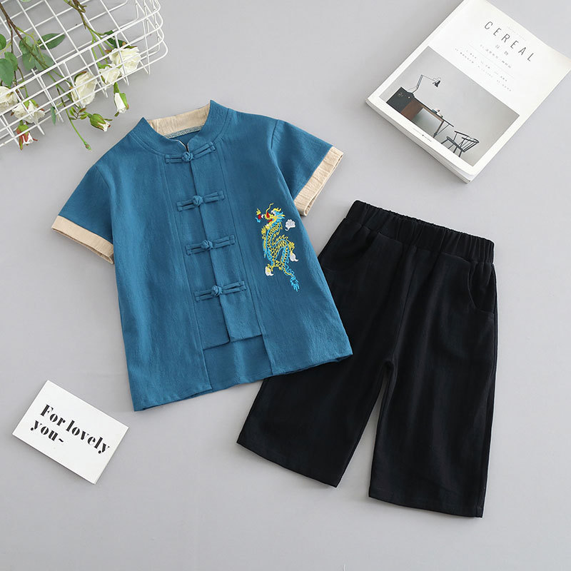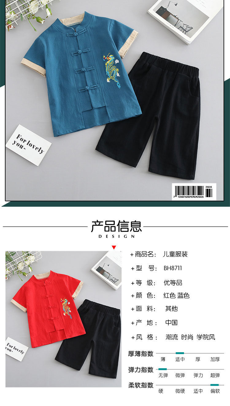 학교 공연 의류 소년 한푸 세트 서양식 아기 여름 의류 짧은 소매 어린이 의류 소년 중국 스타일 탕 세트