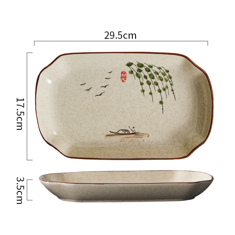 중국 스타일 세라믹 어판 12 인치 찐 어판 접시 유약 색상 창조적 인 가정용 식기 초밥 접시