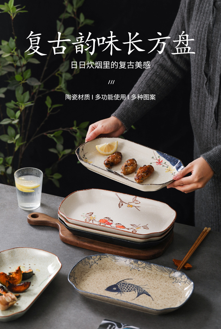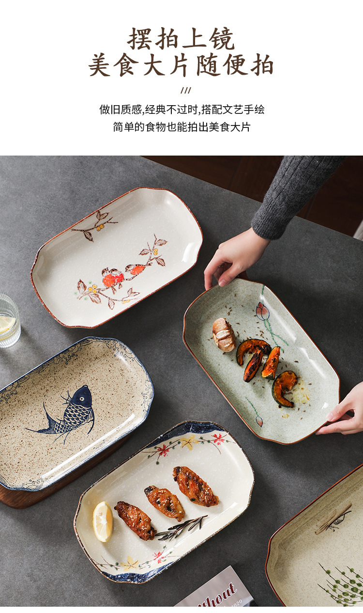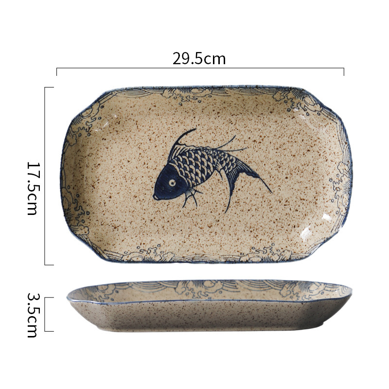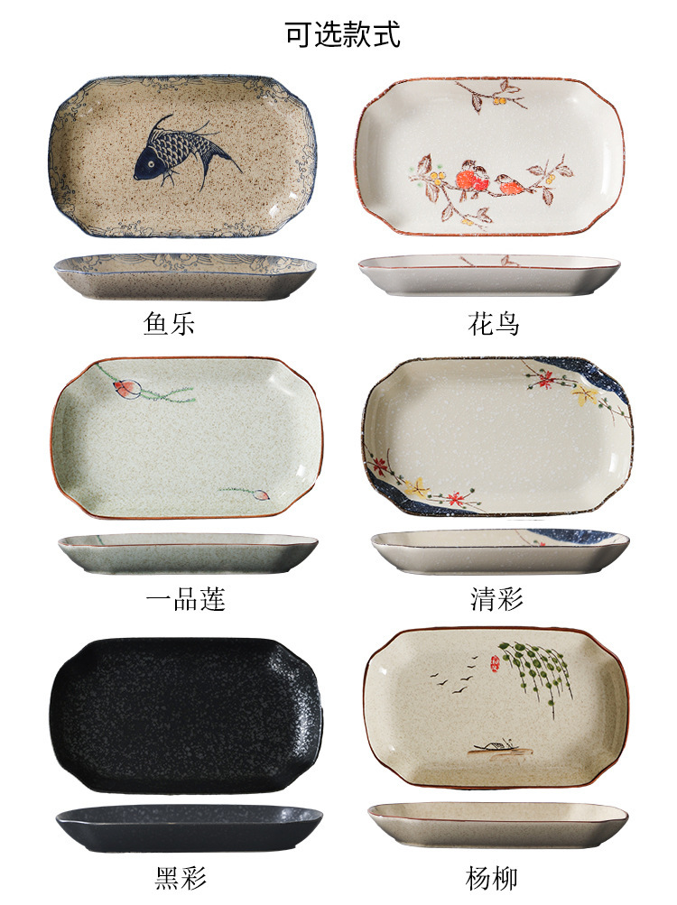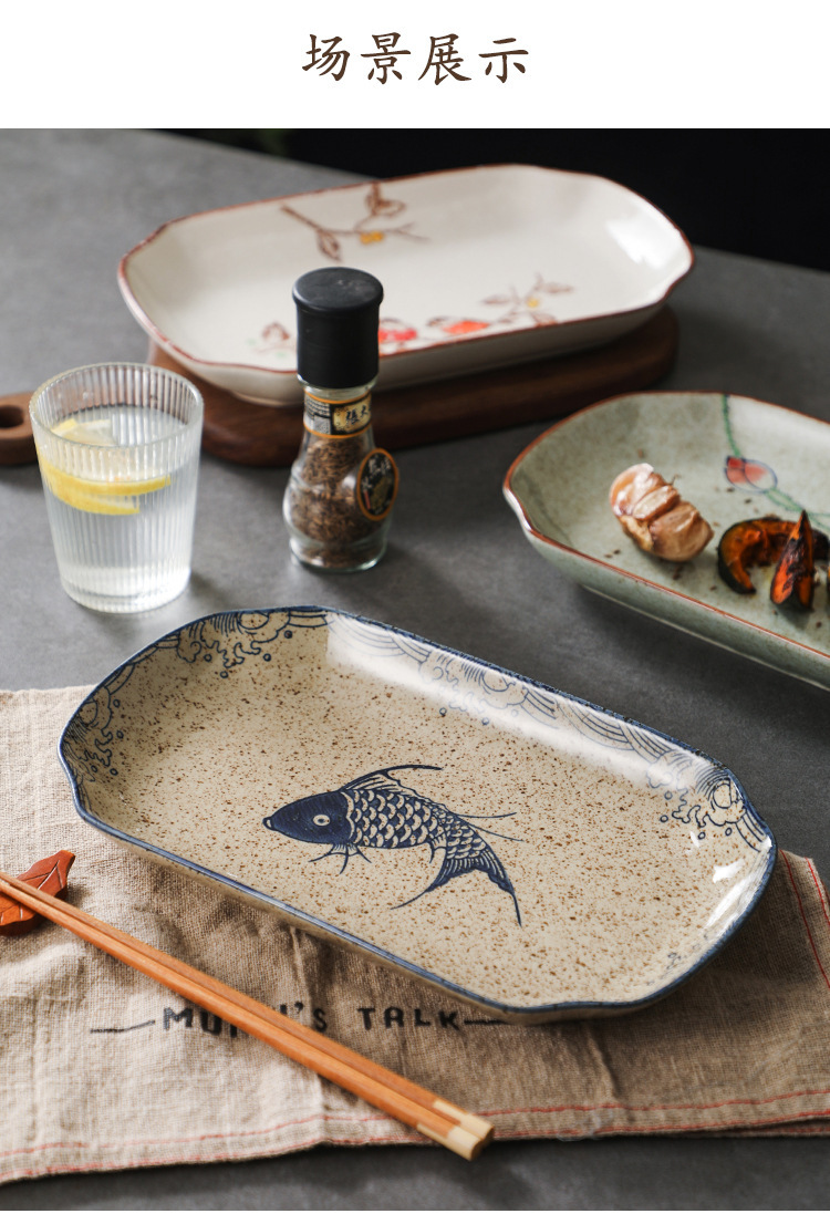 중국 스타일 세라믹 어판 12 인치 찐 어판 접시 유약 색상 창조적 인 가정용 식기 초밥 접시스토어 가기