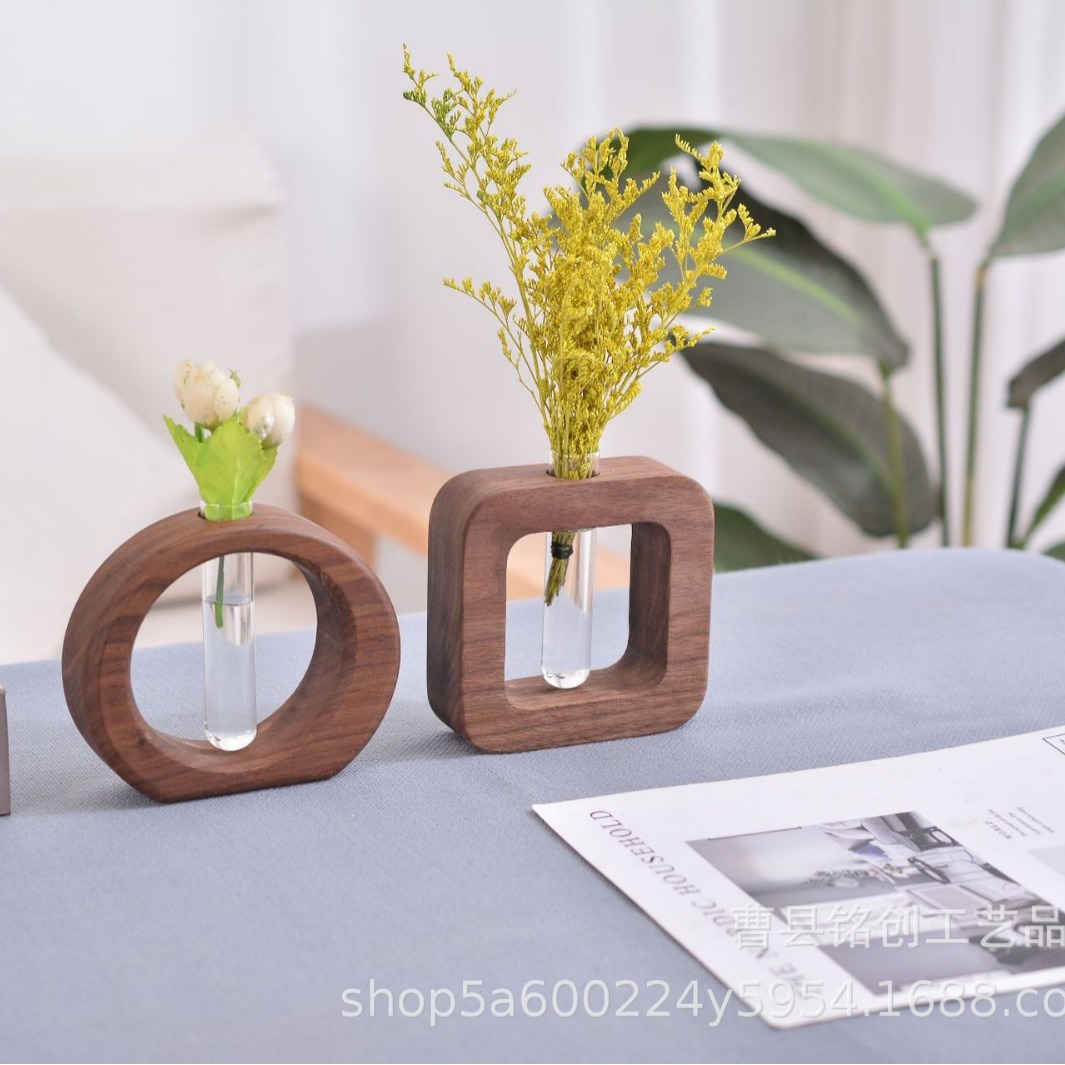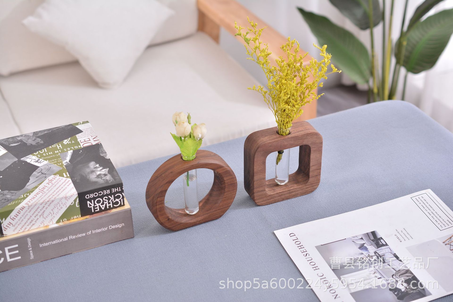 검은 호두 솔리드 우드 꽃병 장식 말린 꽃 티 룸 일본식 식탁 꽃-거실 배치 작은 꽃 수경 꽃병 장식스토어 가기