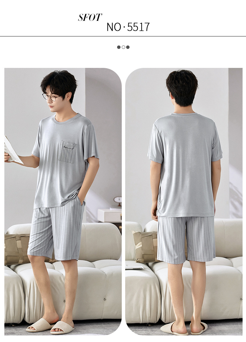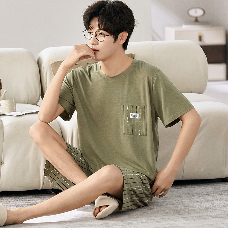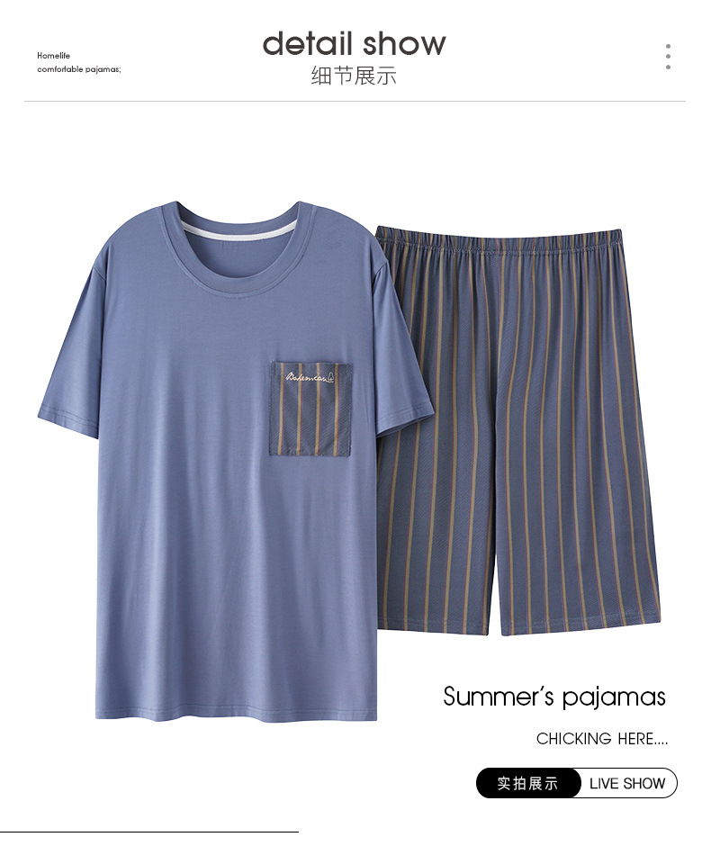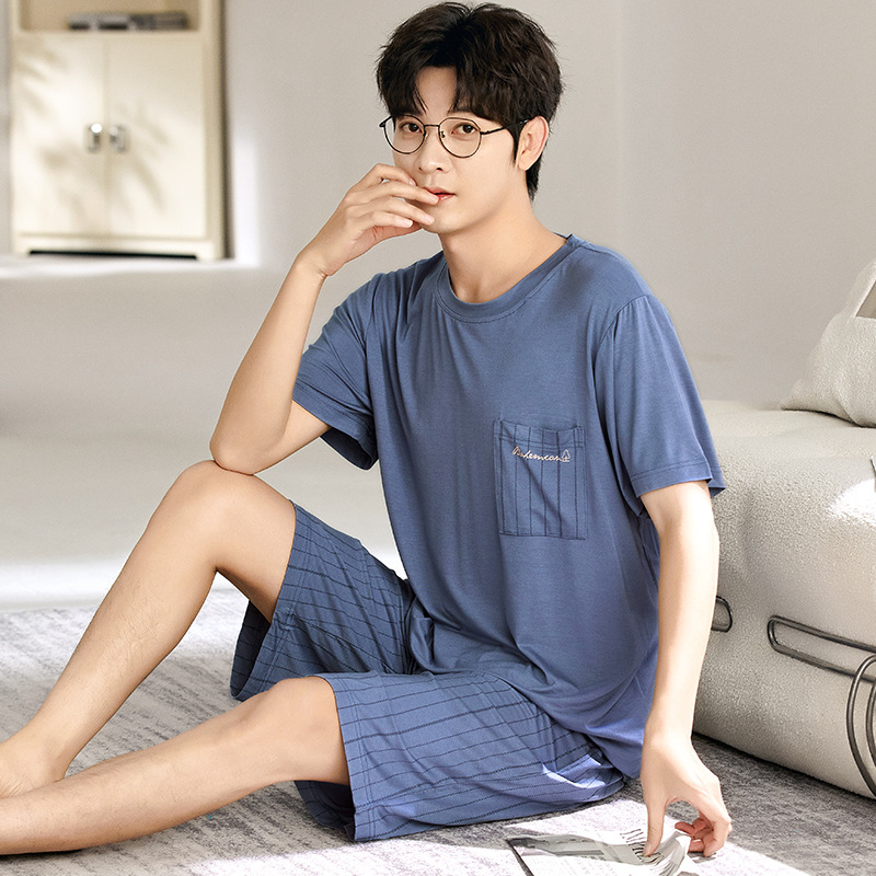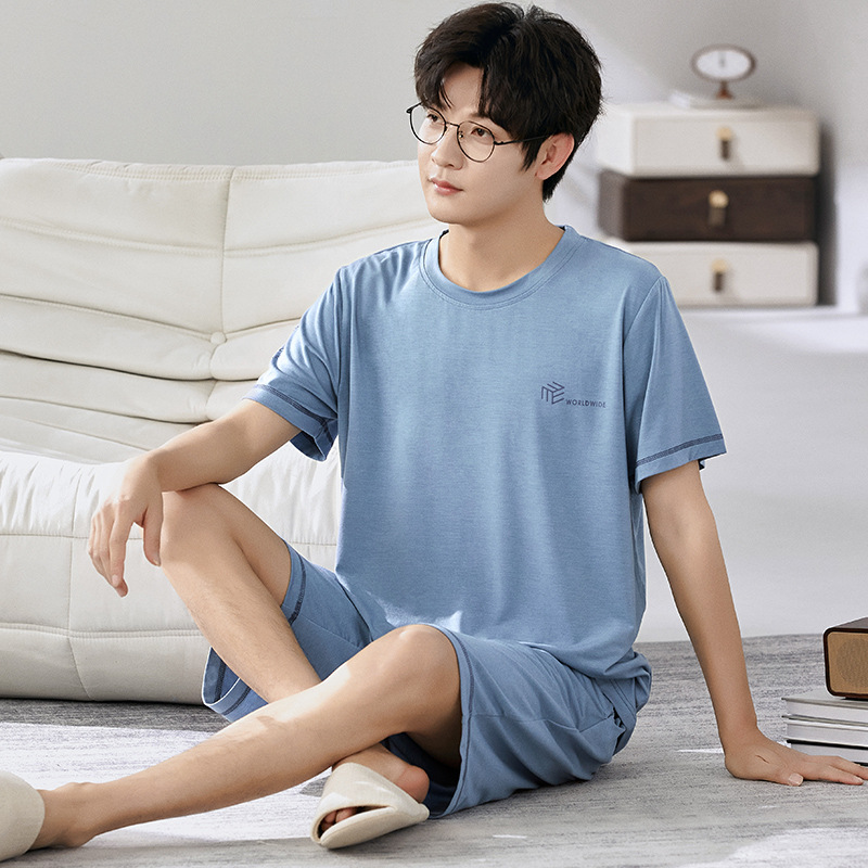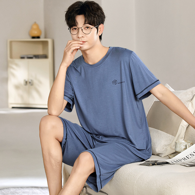 새로운 모달 남성 잠옷 여름 아이스 실크 쿨 얇은 대형 짧은 소매 반바지 외부 홈 착용 세트스토어 가기