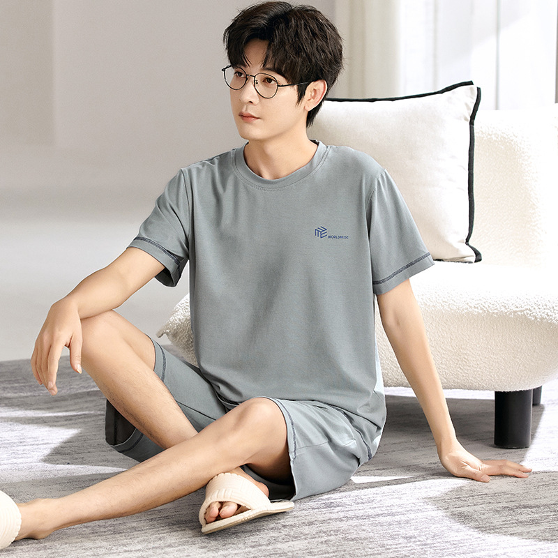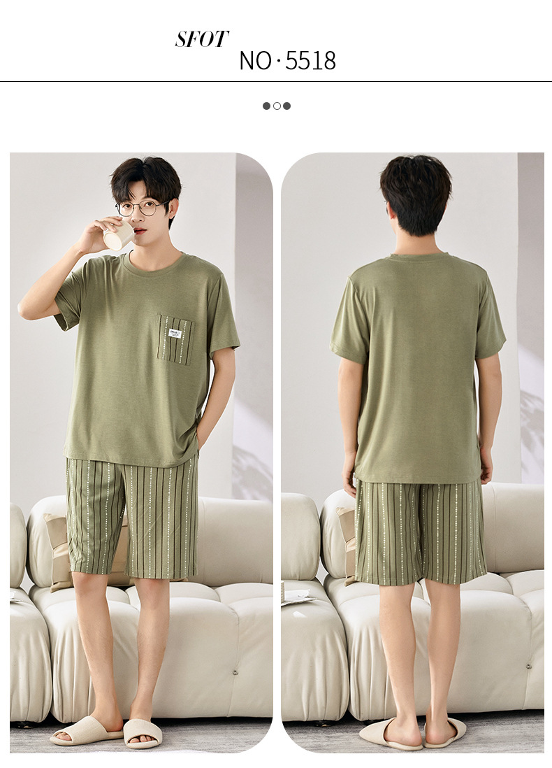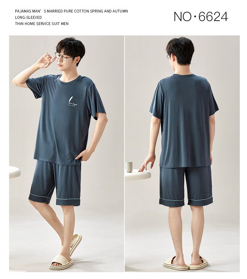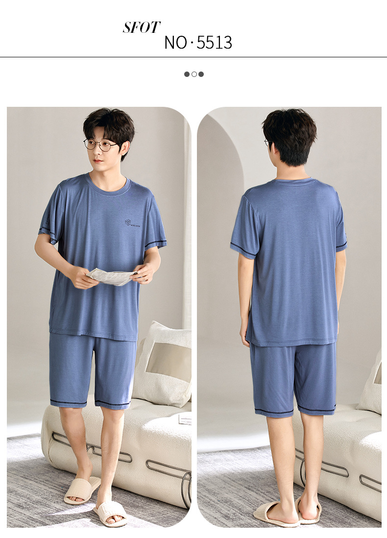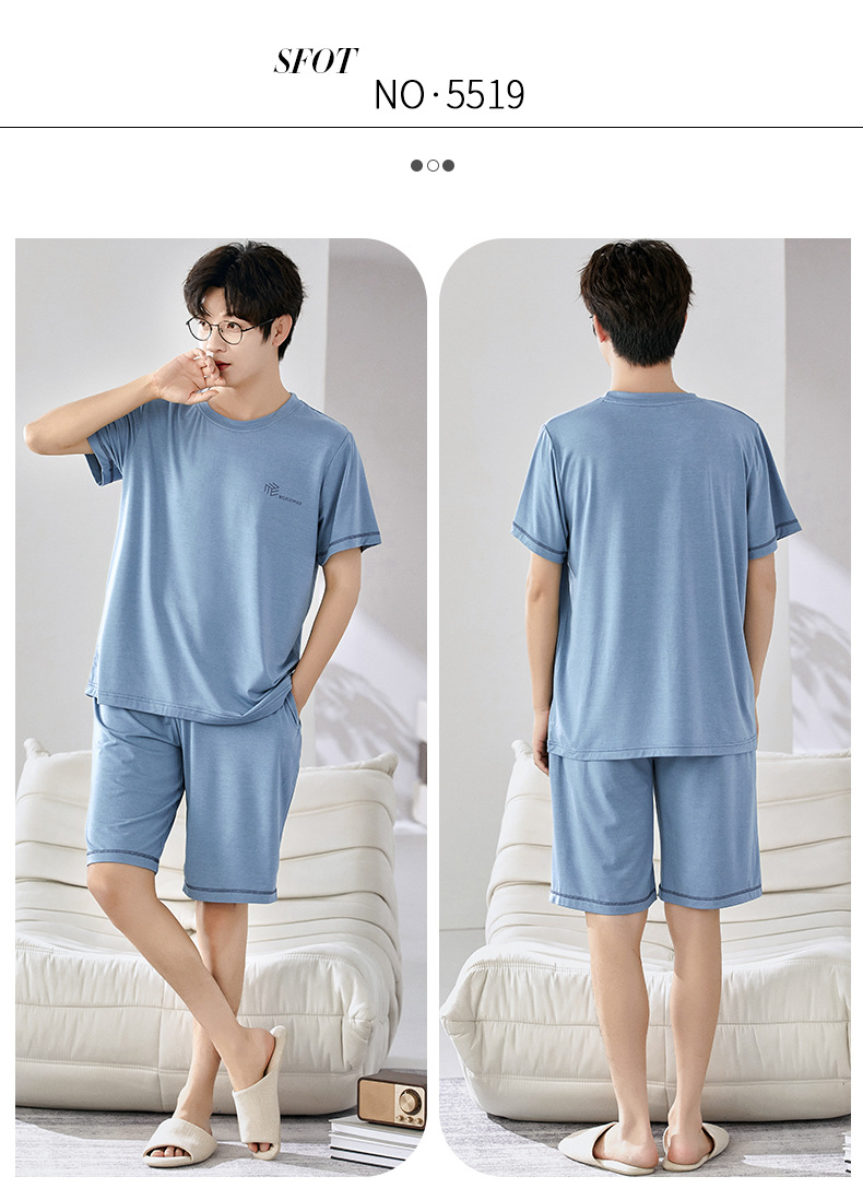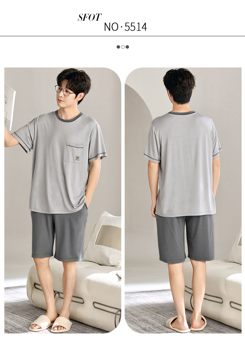 새로운 모달 남성 잠옷 여름 아이스 실크 쿨 얇은 대형 짧은 소매 반바지 외부 홈 착용 세트스토어 가기