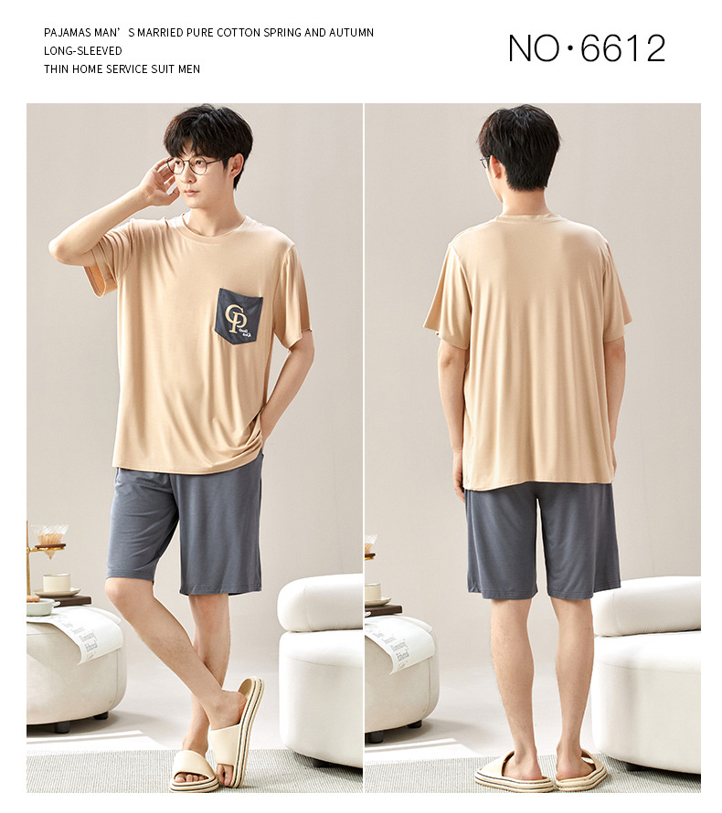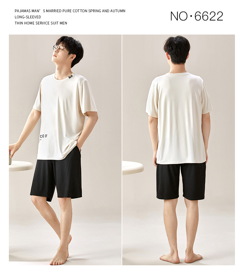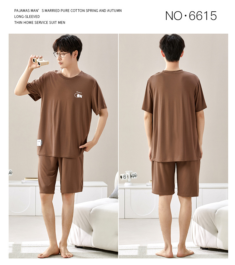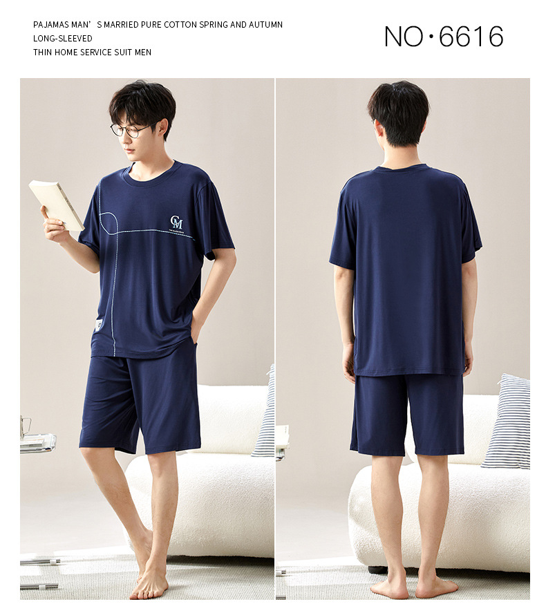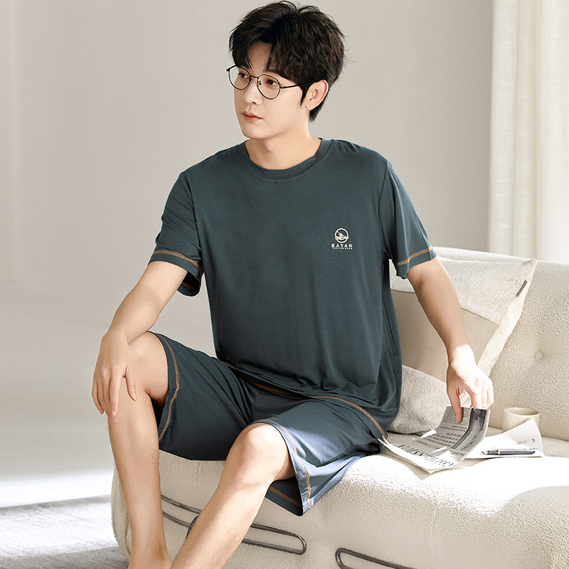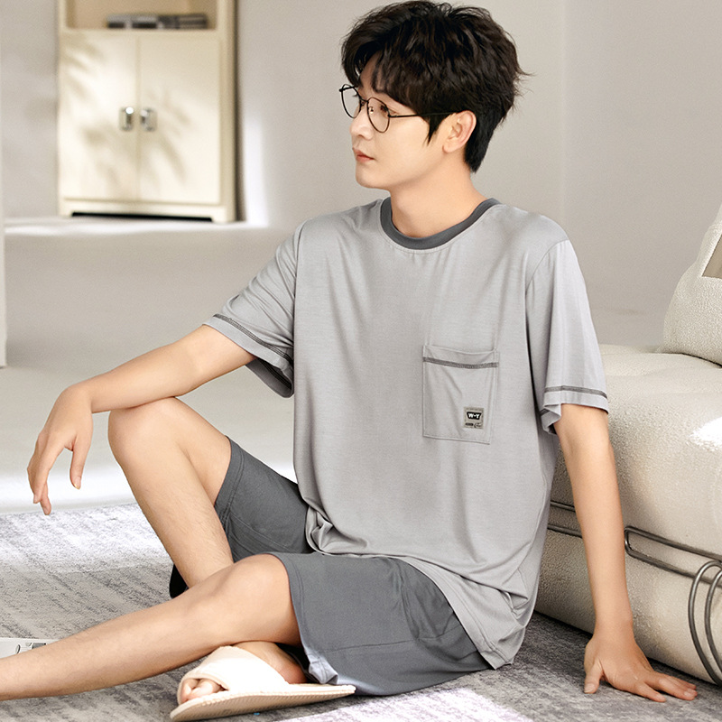 새로운 모달 남성 잠옷 여름 아이스 실크 쿨 얇은 대형 짧은 소매 반바지 외부 홈 착용 세트