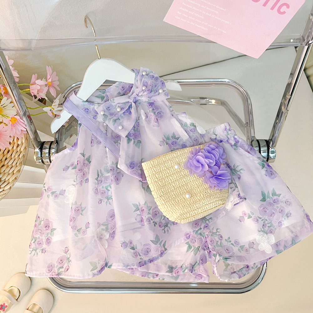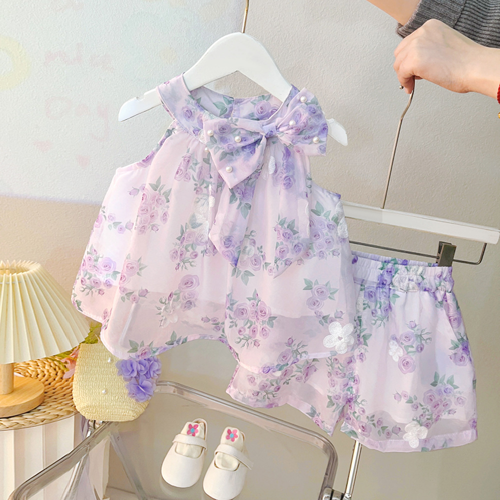 여자 여름 서양식 세트 어린이 새 도착 여성 아기 한국 얇은 꽃 상단 반바지 2 피스 2873