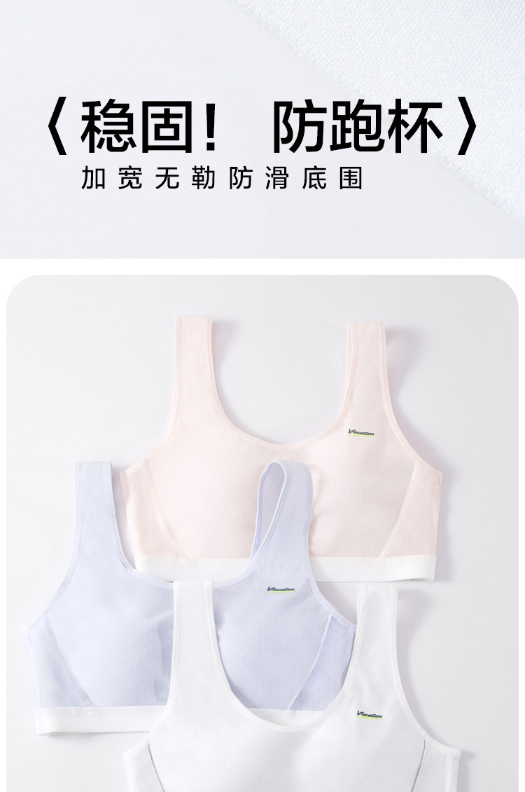 Anfeiya 여름 얇은 시원한 통기성 중학교 학생 소녀 속옷 고정 컵 사춘기 스포츠 브라