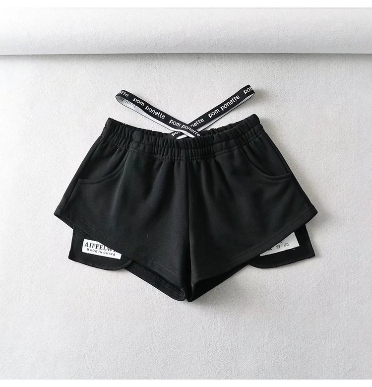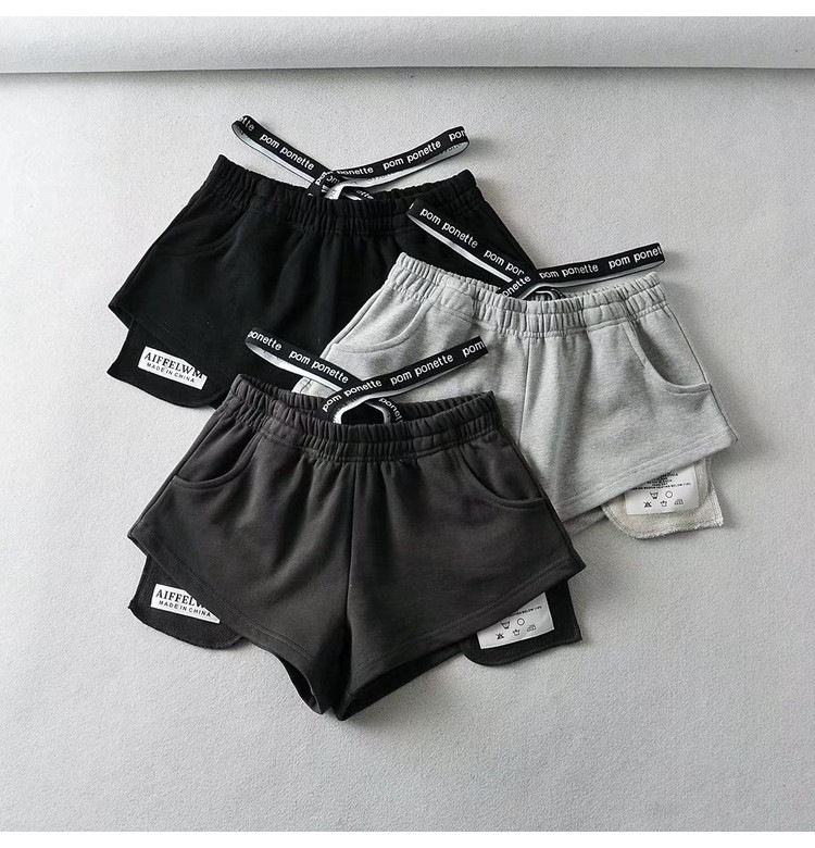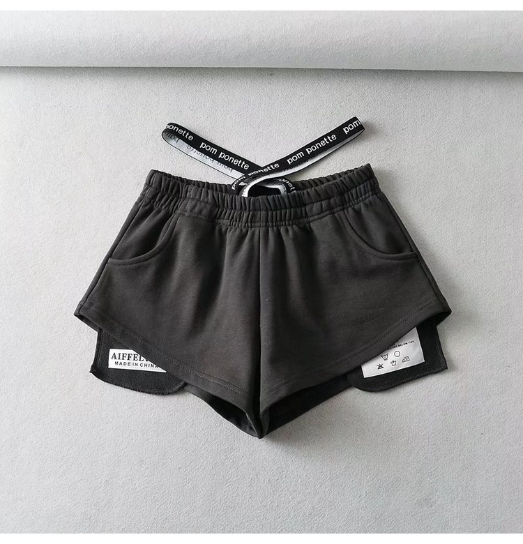 디자인 감각 틈새 높은 허리 반바지 여성 여름 뜨거운 소녀 스타일 느슨한 허리 라벨 느슨한 허리 넓은 다리 캐주얼 핫 바지