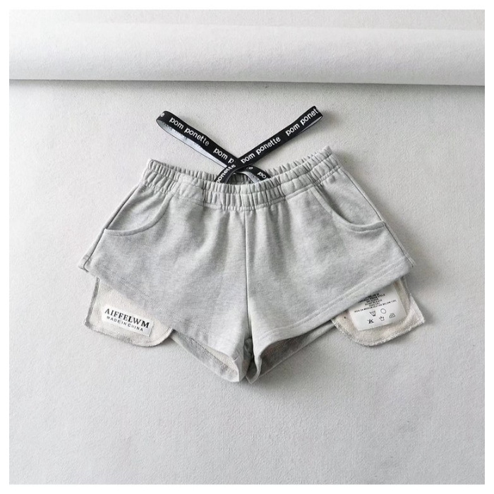 디자인 감각 틈새 높은 허리 반바지 여성 여름 뜨거운 소녀 스타일 느슨한 허리 라벨 느슨한 허리 넓은 다리 캐주얼 핫 바지스토어 가기
