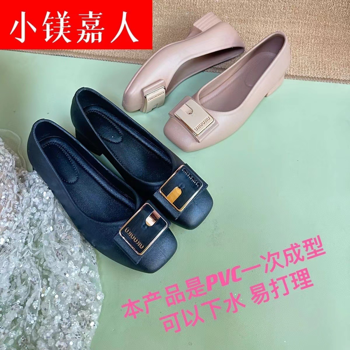 새로운 패션 싱글 레이어 신발 여성 2024 봄과 가을 인터넷 인기있는 스퀘어 헤드 여성 신발 미끄럼 방지 여성 샌들 여성용 외부 착용 편안한스토어 가기
