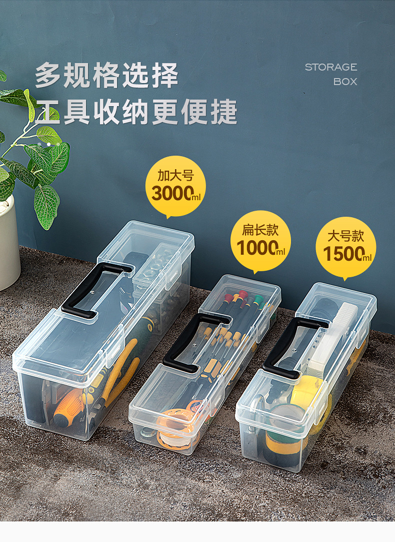 가정용 하드웨어 도구 상자 투명 긴 손 나사 전기 낚시 기어 드릴 액세서리 저장 상자 플라스틱 상자