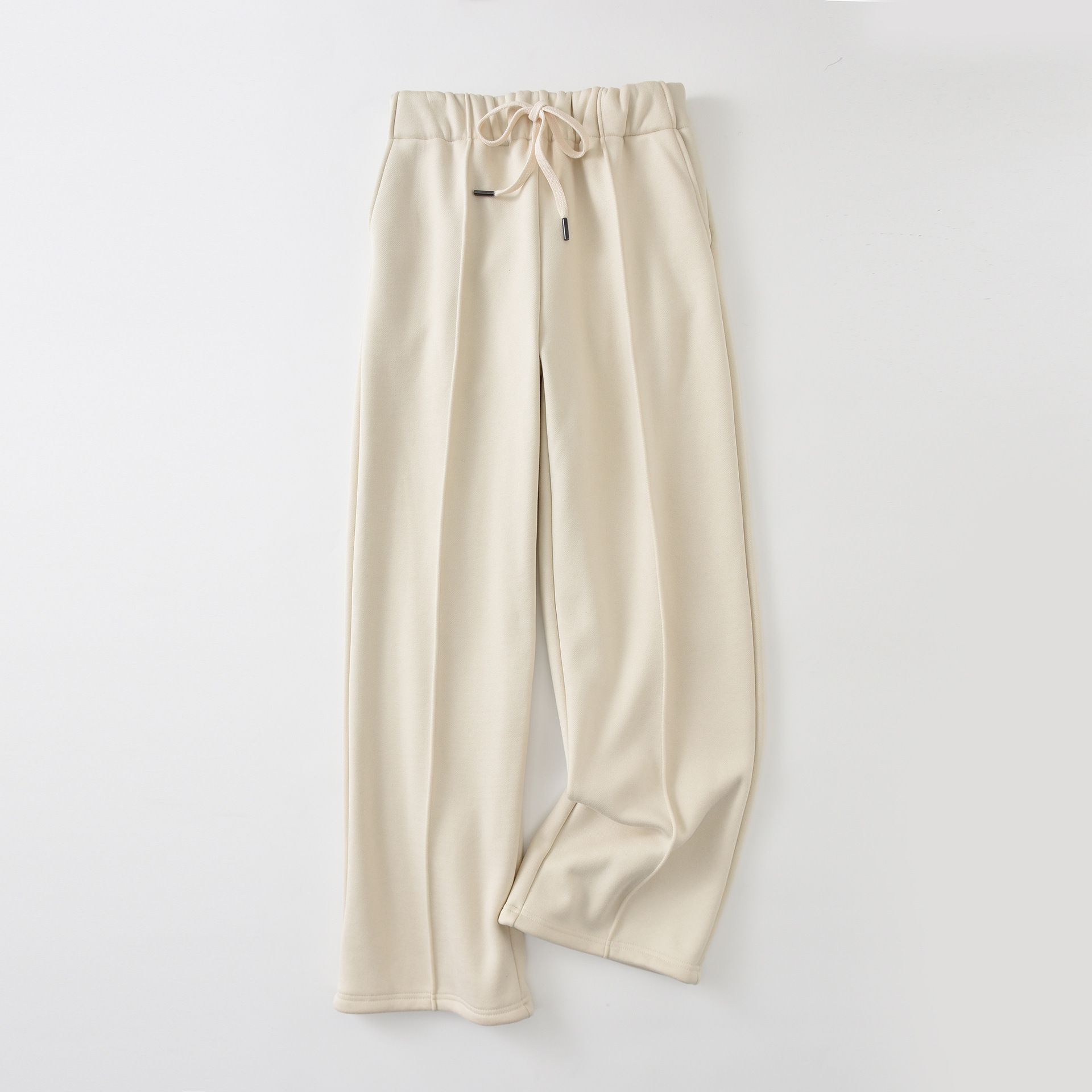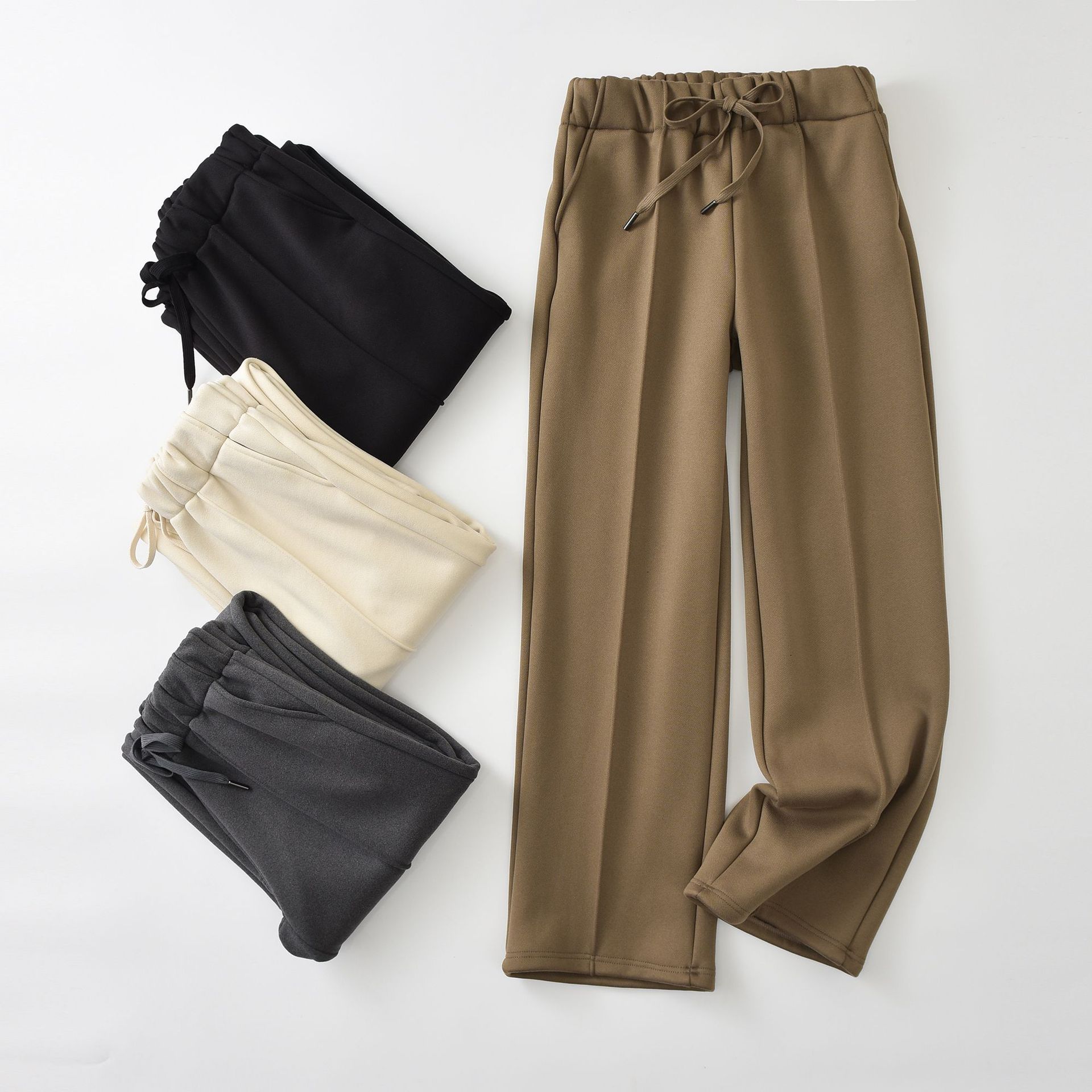 스포츠 바지 여성의 가을과 겨울 캐주얼 드레이프 따뜻한 방풍 바지 2024 새로운 벨벳 패딩 대형 와이드 다리 바지스토어 가기