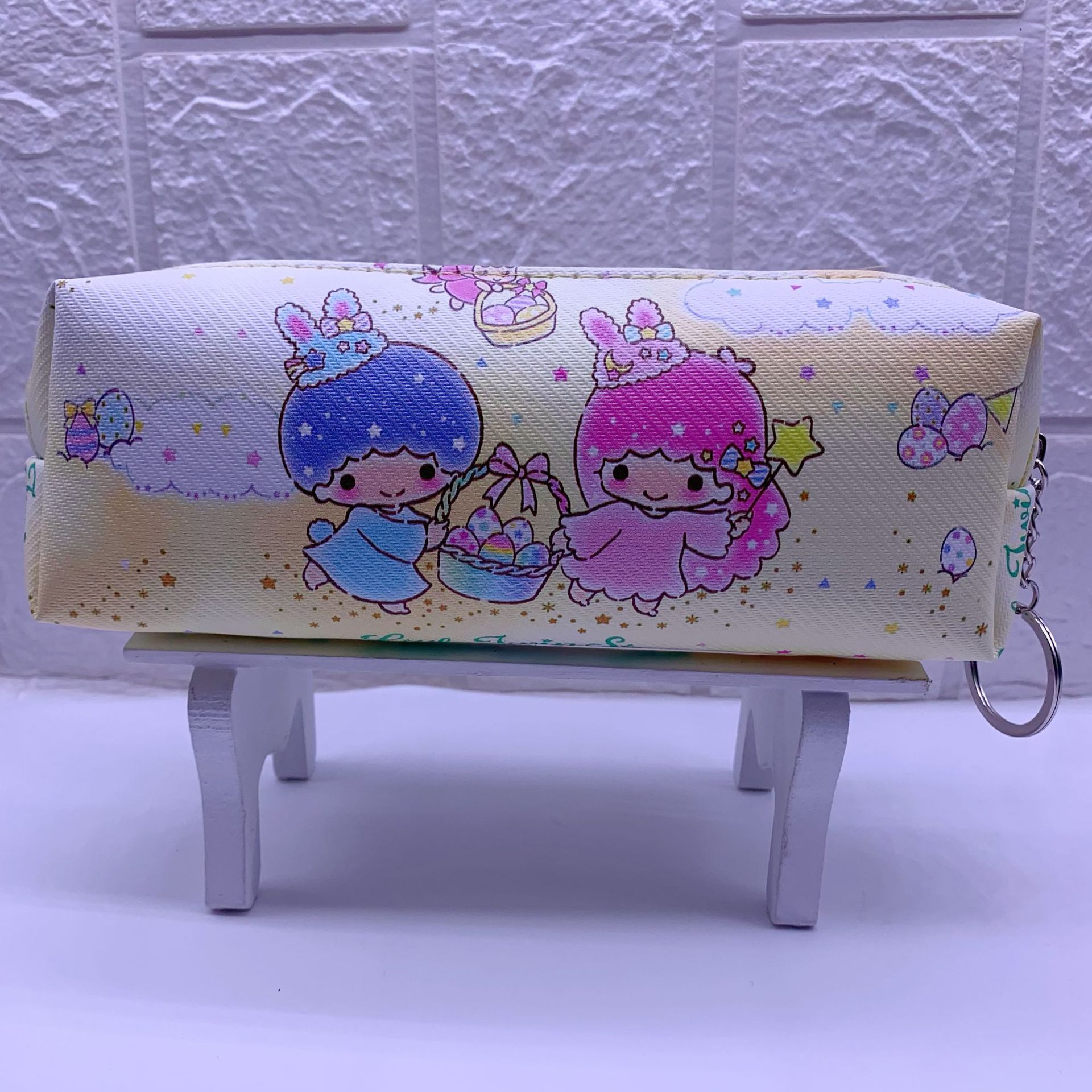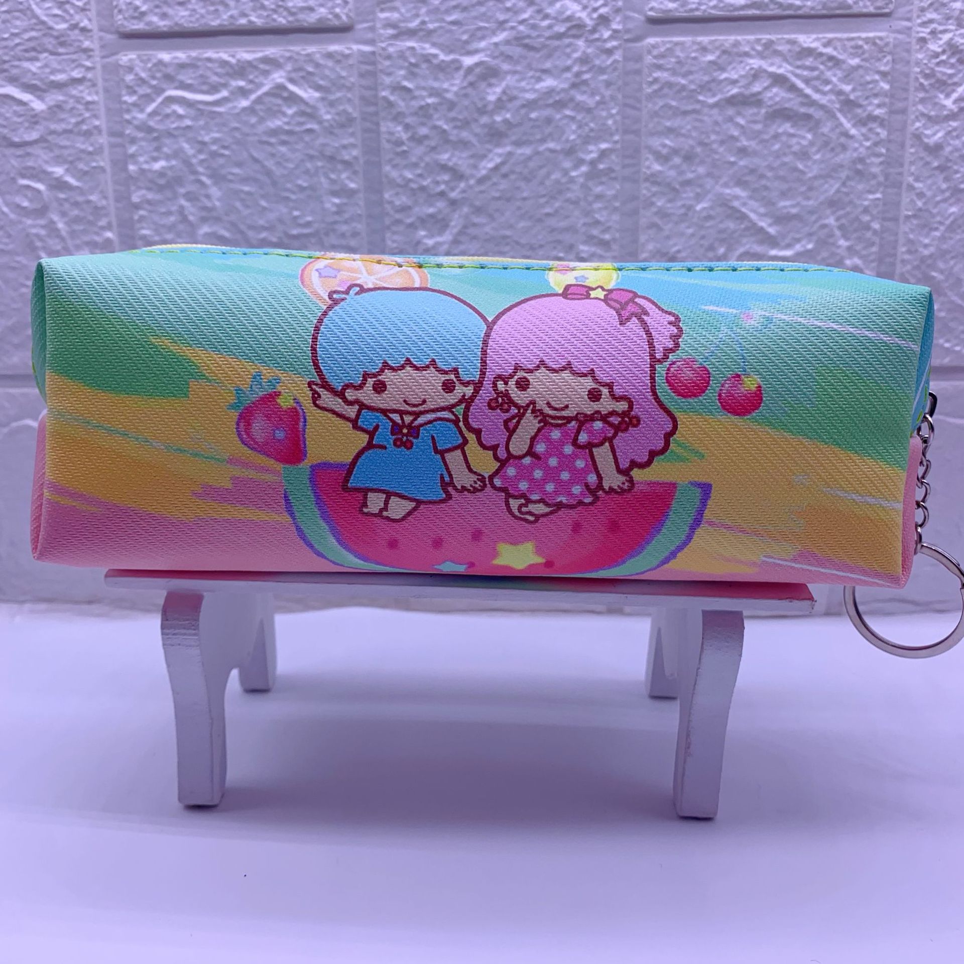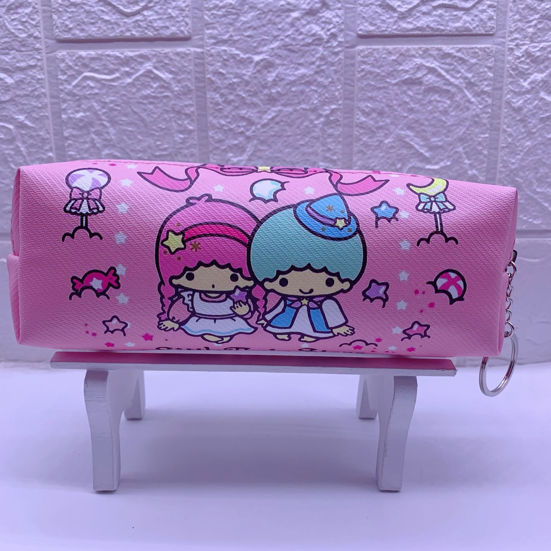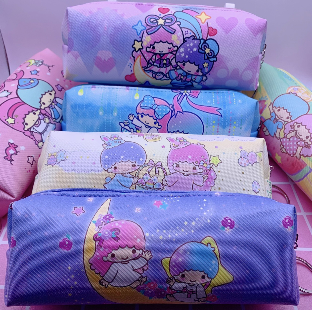 쌍둥이 자리 PU 연필 케이스 귀여운 대용량 저장 가방 학생 문구 가방 싱글 레이어 지퍼 가방 메이크업 가방 소녀 귀여운스토어 가기