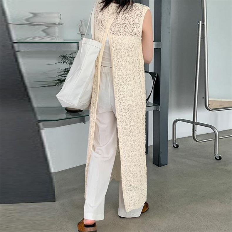 스파이스 소녀 착용 원피스 여름 프랑스 할로우 베스파 스커트 니트 스웨터 여성용 얇은 아우터 블라우스 중간 길이의 여성스토어 가기