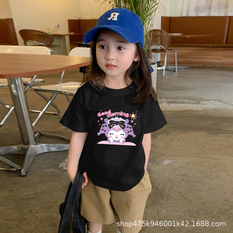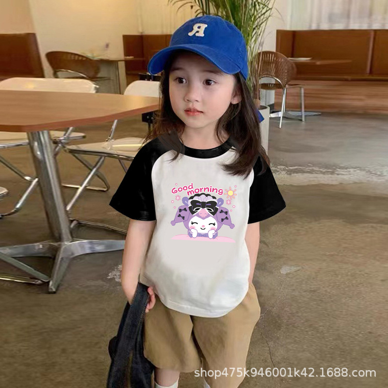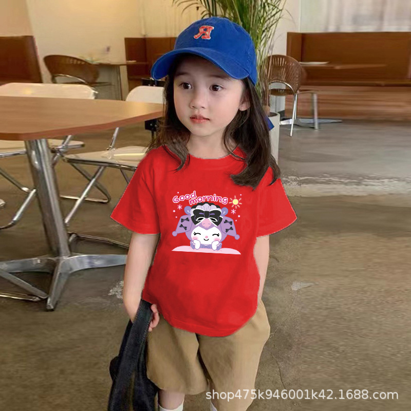 국경 간 소녀 만화 쿨로 미 반팔 티셔츠 코튼 여름 어린이 흰색 반소매 탑 루즈 트렌디 티셔츠스토어 가기