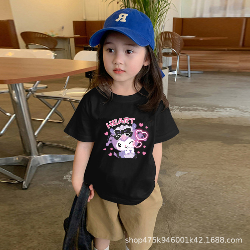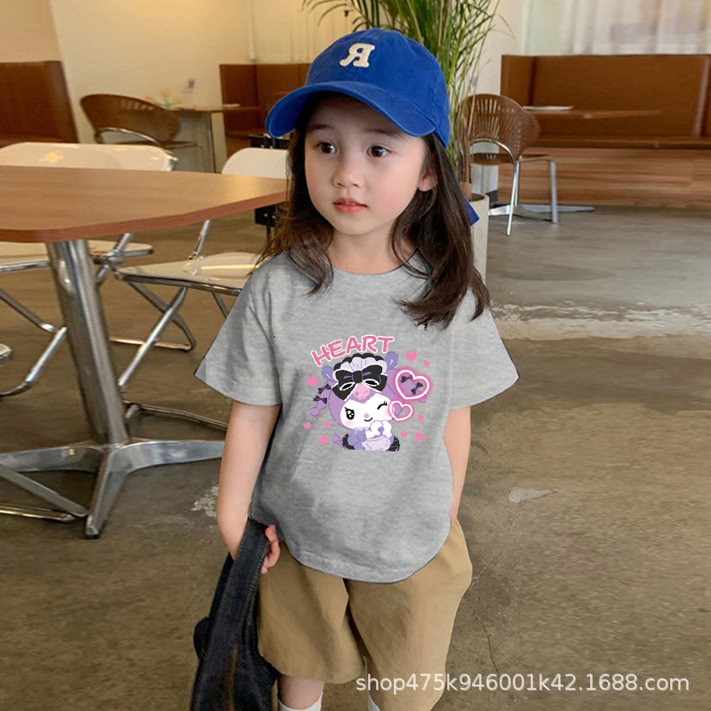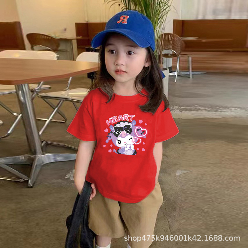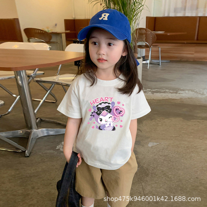 도매 국경 소녀 kulomi 짧은 소매 라운드 넥 티셔츠 코튼 여름 어린이 얇은 하프 슬리브 탑 느슨한 조수