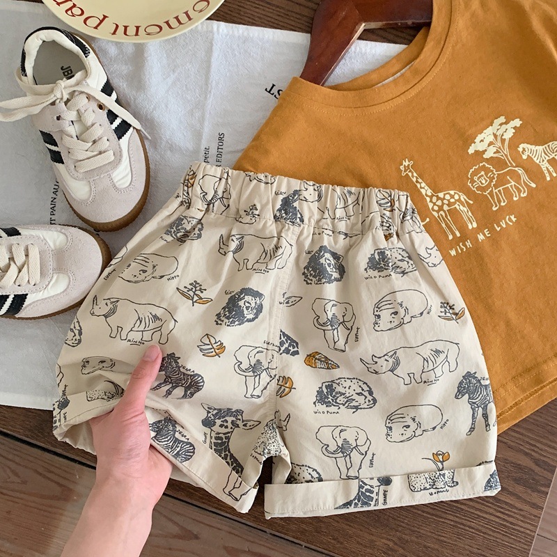 25 새로운 아동 의류 한국 스타일 아동 캐주얼 반바지 여름 소년 5부 바지 인쇄 만화 아기 바지 유행스토어 가기