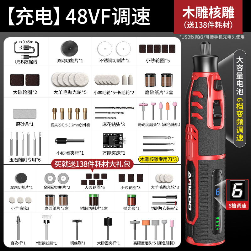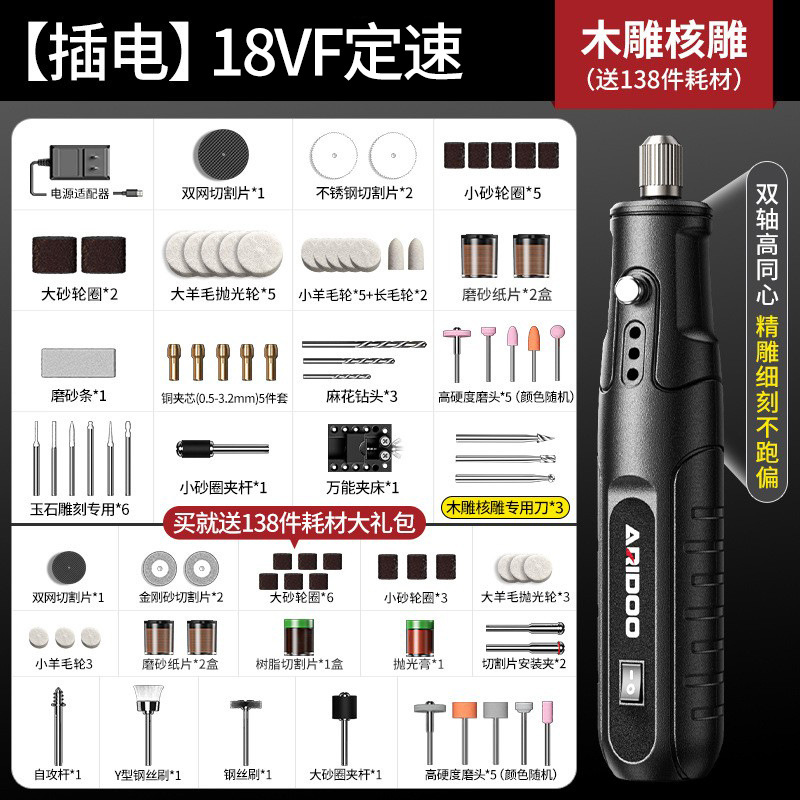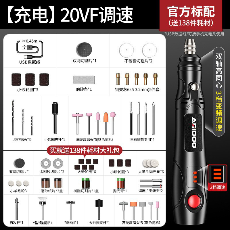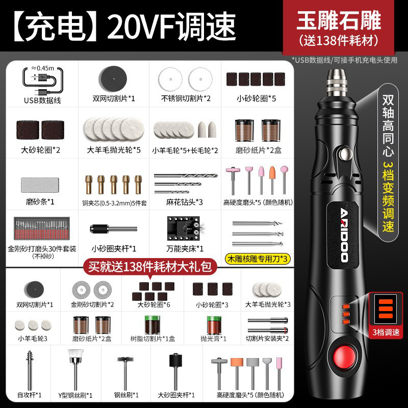 • [충전] 20VF 속도 조절: 목각 및 코어 조각 + 무료 소모품 138개