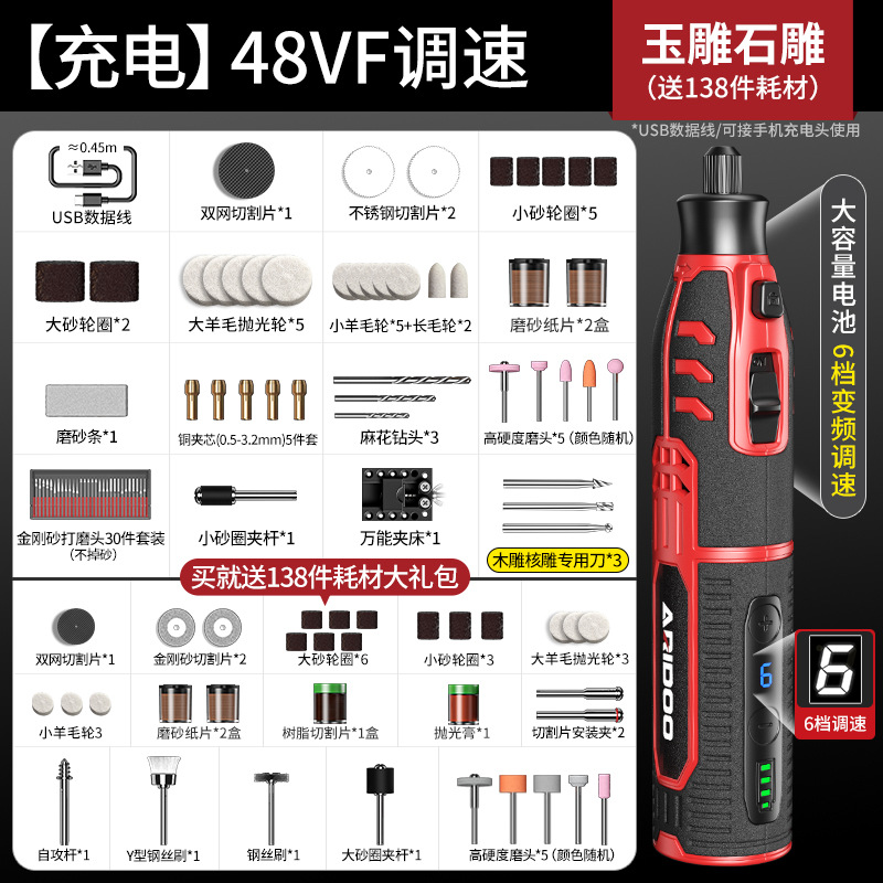 • [충전] 20VF 속도 조절: 옥 조각 + 무료 소모품 138개